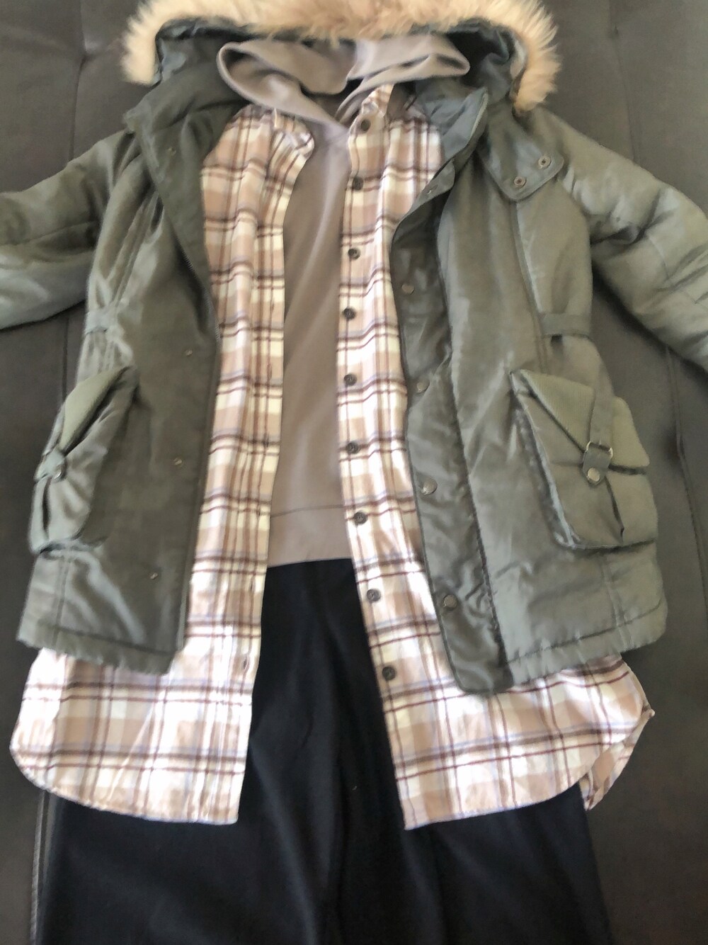 #2021/12/26 #ハンパ丈ワイドパンツ #チェックシャツワンピース #きれいめパーカー #ミリタリージャケット