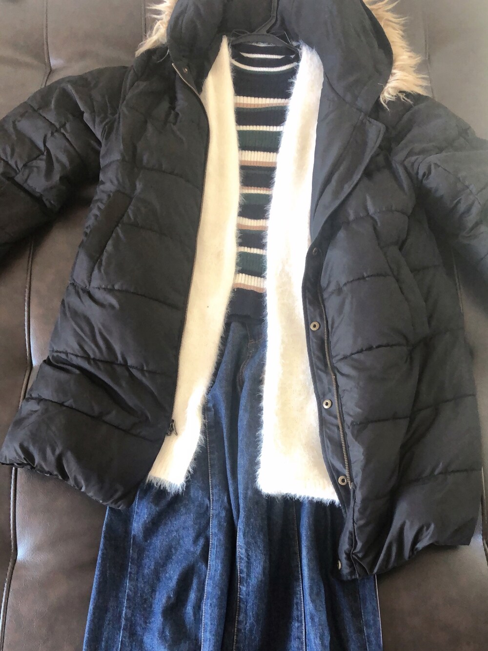 #2022/01/15 #リバーシブルミリタリージャケット #フェザーロングカーディガン #ハイネックニットプルオーバー #フリンジデニムワイドパンツ