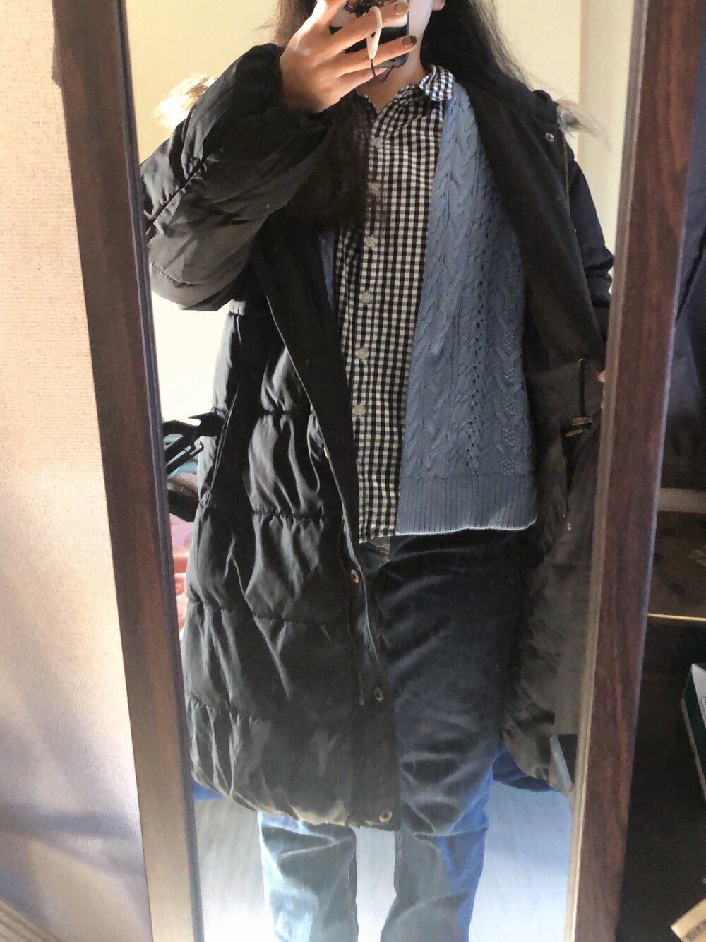 #2022/02/05 #リバーシブルミリタリージャケット #チェックシャツ #ケーブル編みカーディガン #デニムテーパードパンツ