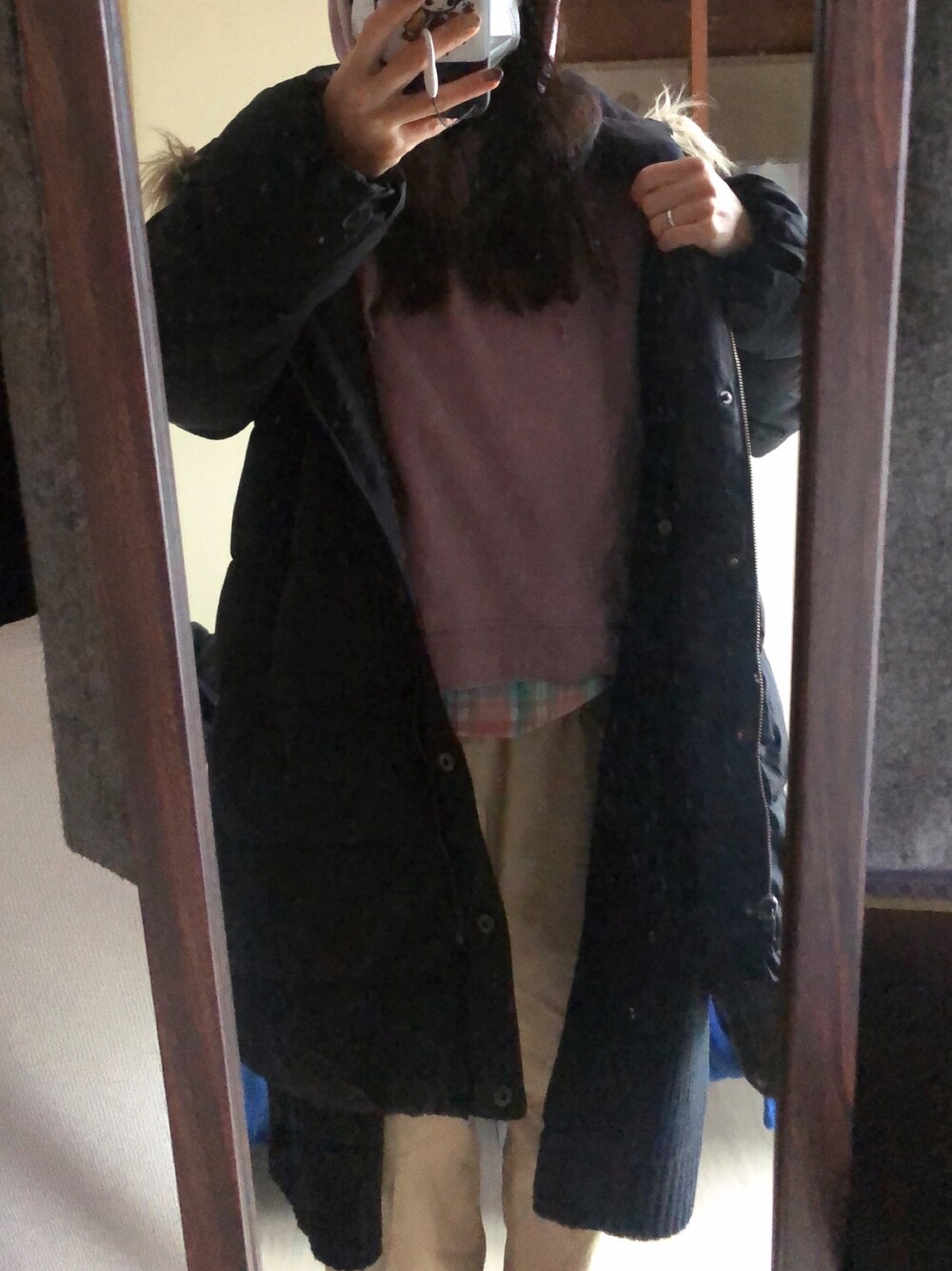 #2022/02/14 #リバーシブルミリタリージャケット #パーカー #レース付チェックシャツ #ワイドパンツ