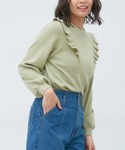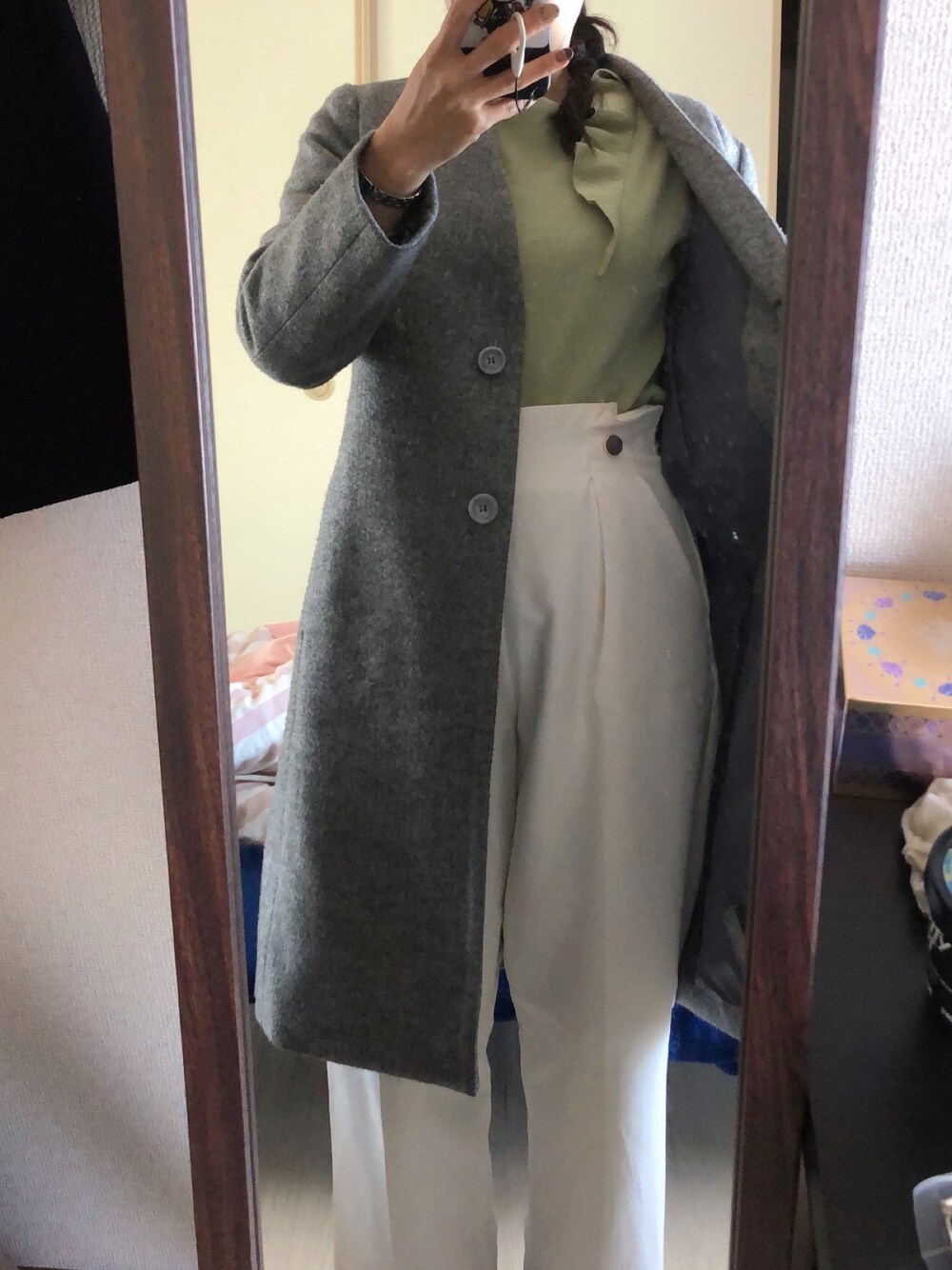 #2022/02/17 #フリルニット #前釦テーパードパンツ #ノーカラージャケット