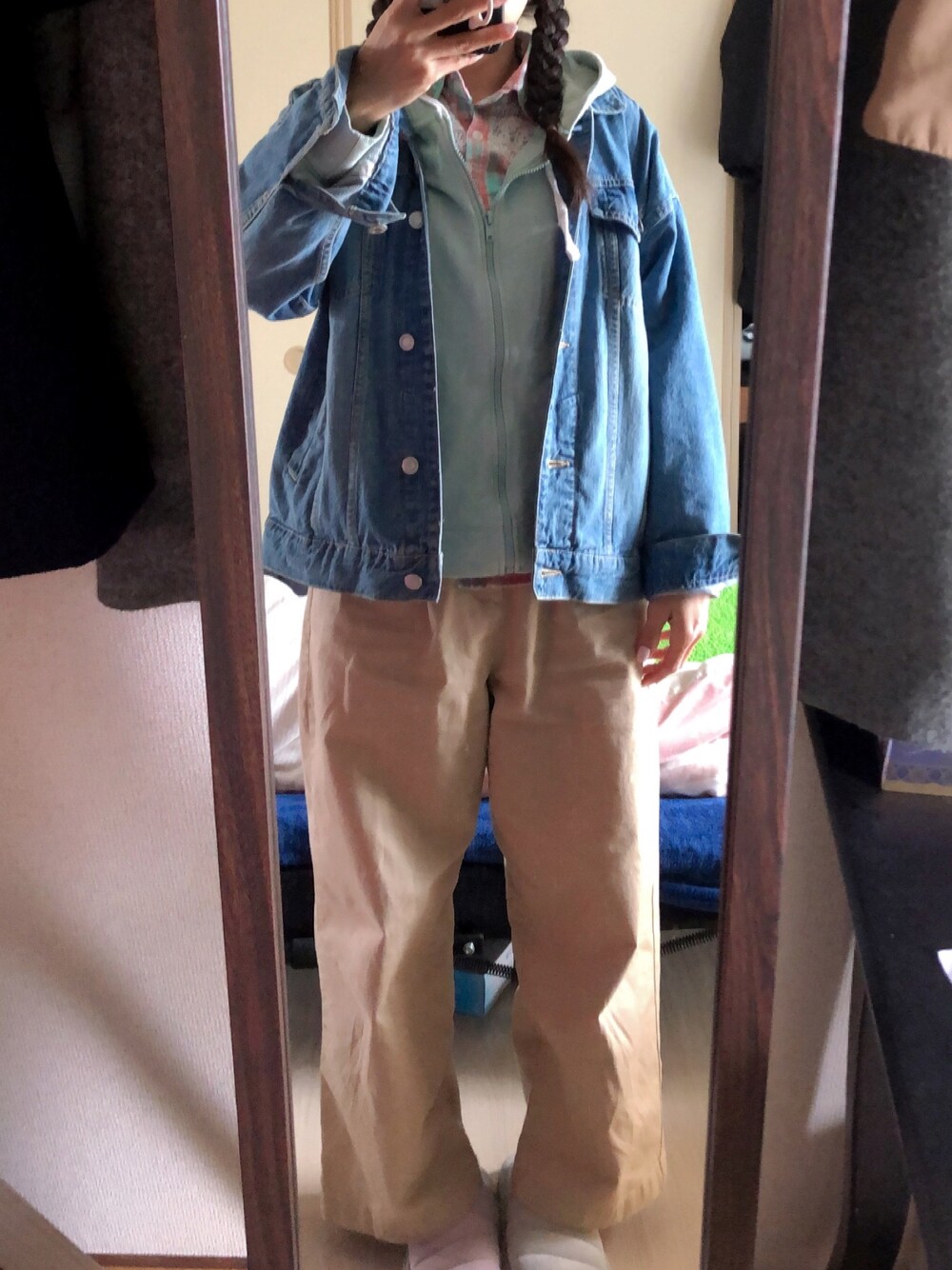 #2022/04/06 #ワイドパンツ #チェックシャツ #ジップパーカー #ゆるGジャン