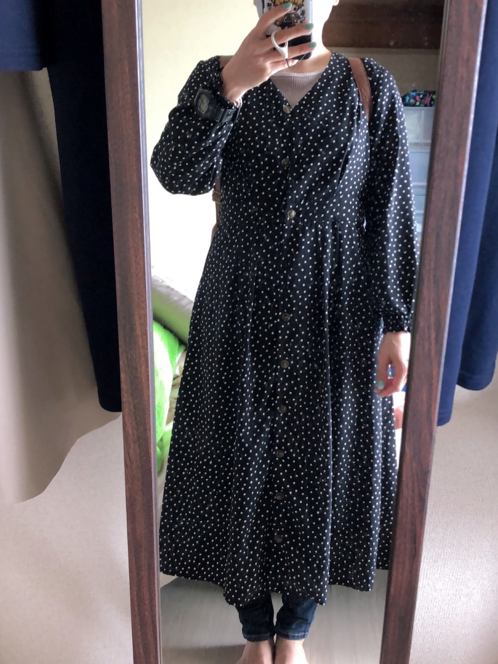 #2022/04/28 #Vネックワンピース #配色使いプルオーバー #デニムスキニーパンツ
