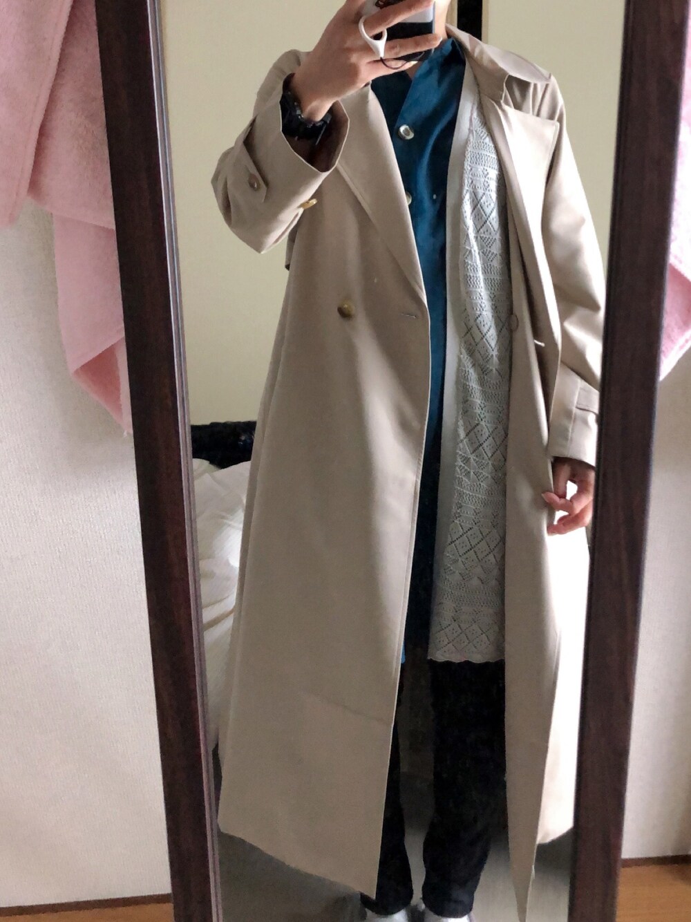 #2022/05/16 #カラースキニーパンツ #袖リボンチュニックブラウス #ロングカーディガン #ロングトレンチコート