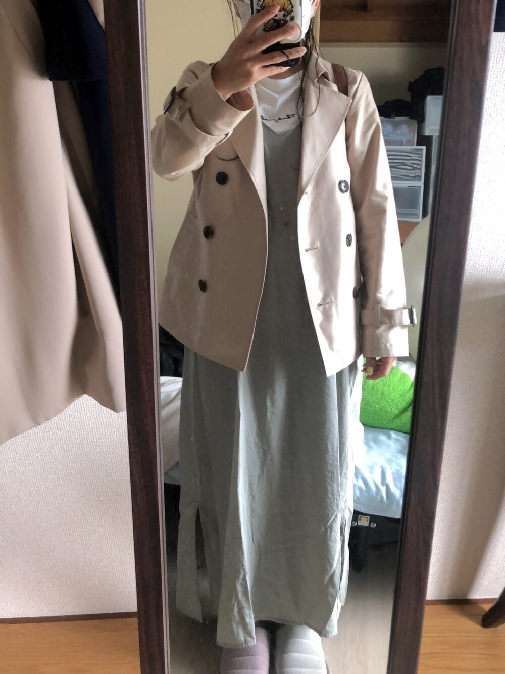 #2022/05/22 #フリンジスキニーパンツ #七部袖ロゴTシャツ #キャミワンピース #ハーフトレンチコート