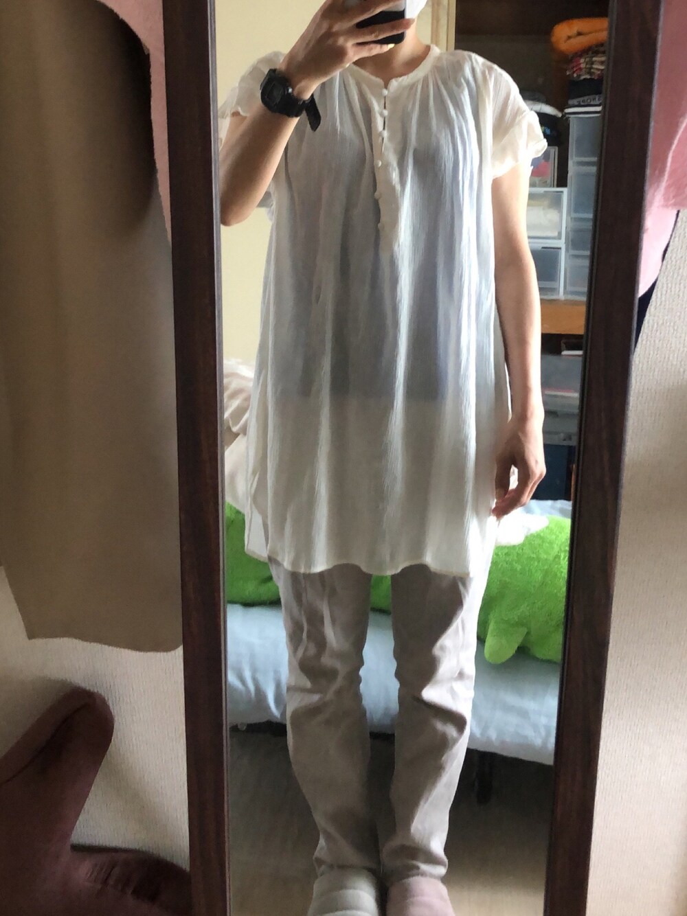 #2022/08/07 #チュニックブラウス #カラースキニーパンツ