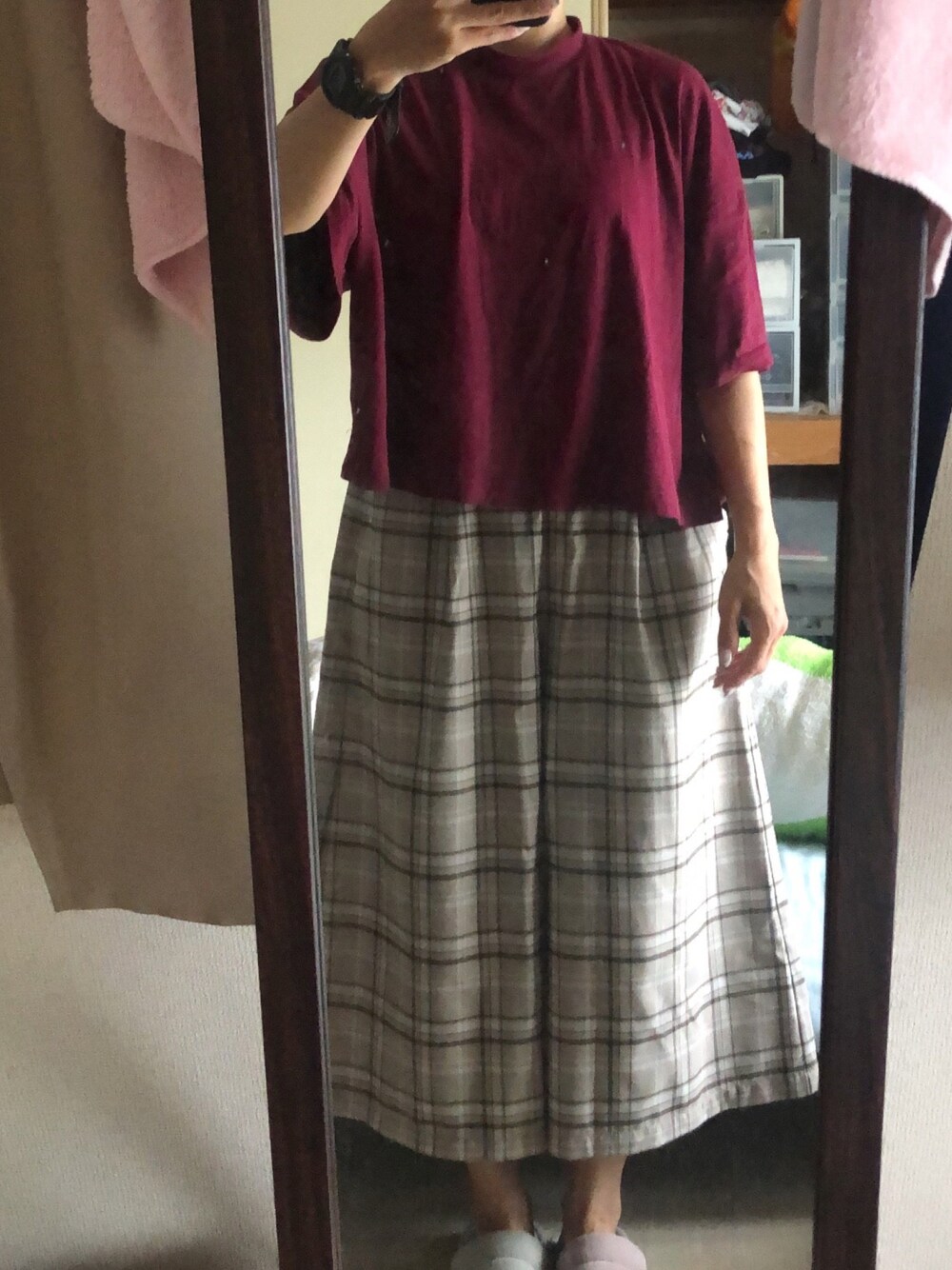 #2022/09/07 #チェックガウチョパンツ #ハイネックTシャツ