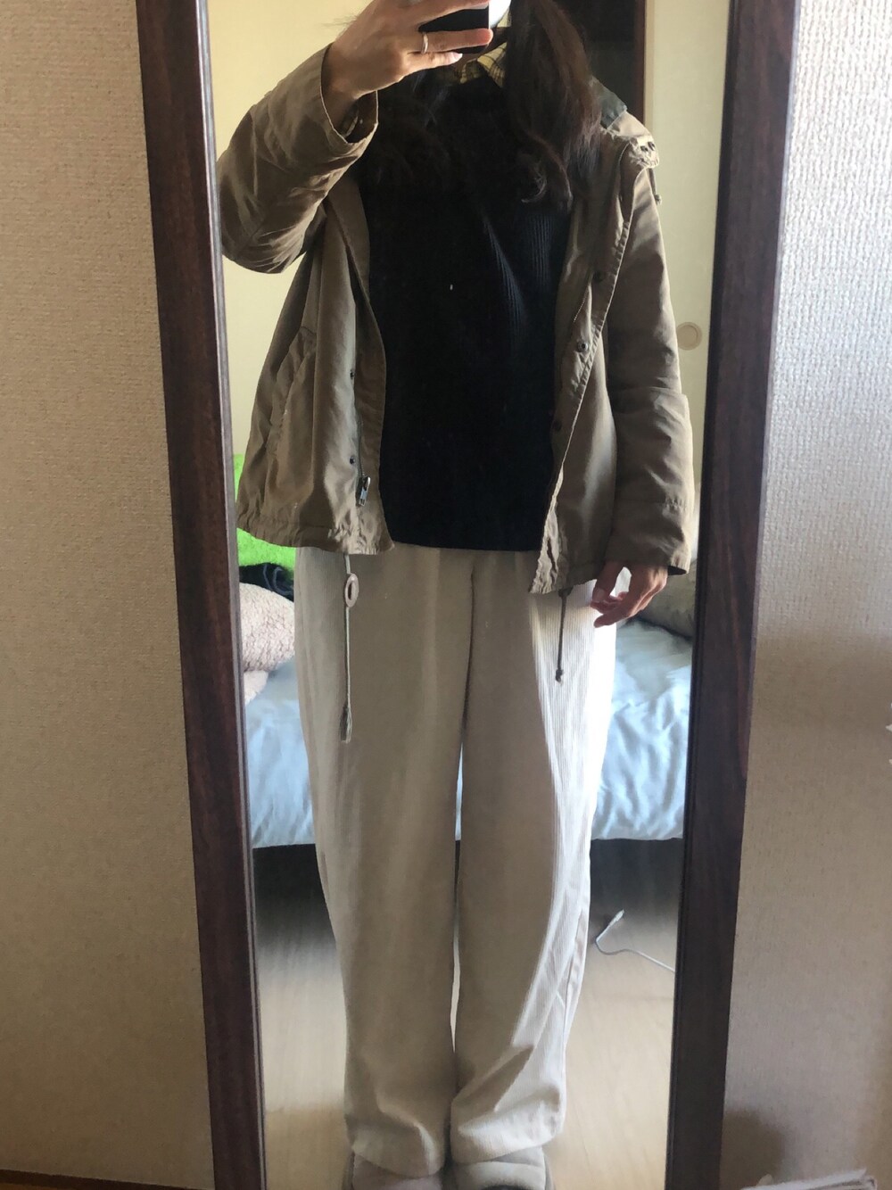 #2022/11/27 #ミリタリージャケット #ワッフルパーカー #チェックシャツ #リブストレートパンツ