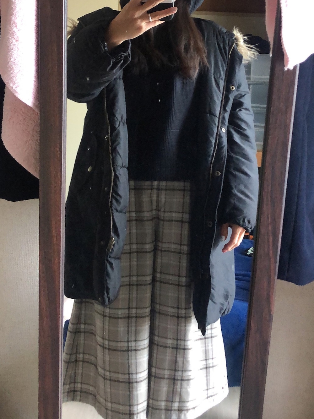 #2022/12/30 #リバーシブルミリタリージャケット #ワッフルパーカー #チェックガウチョパンツ