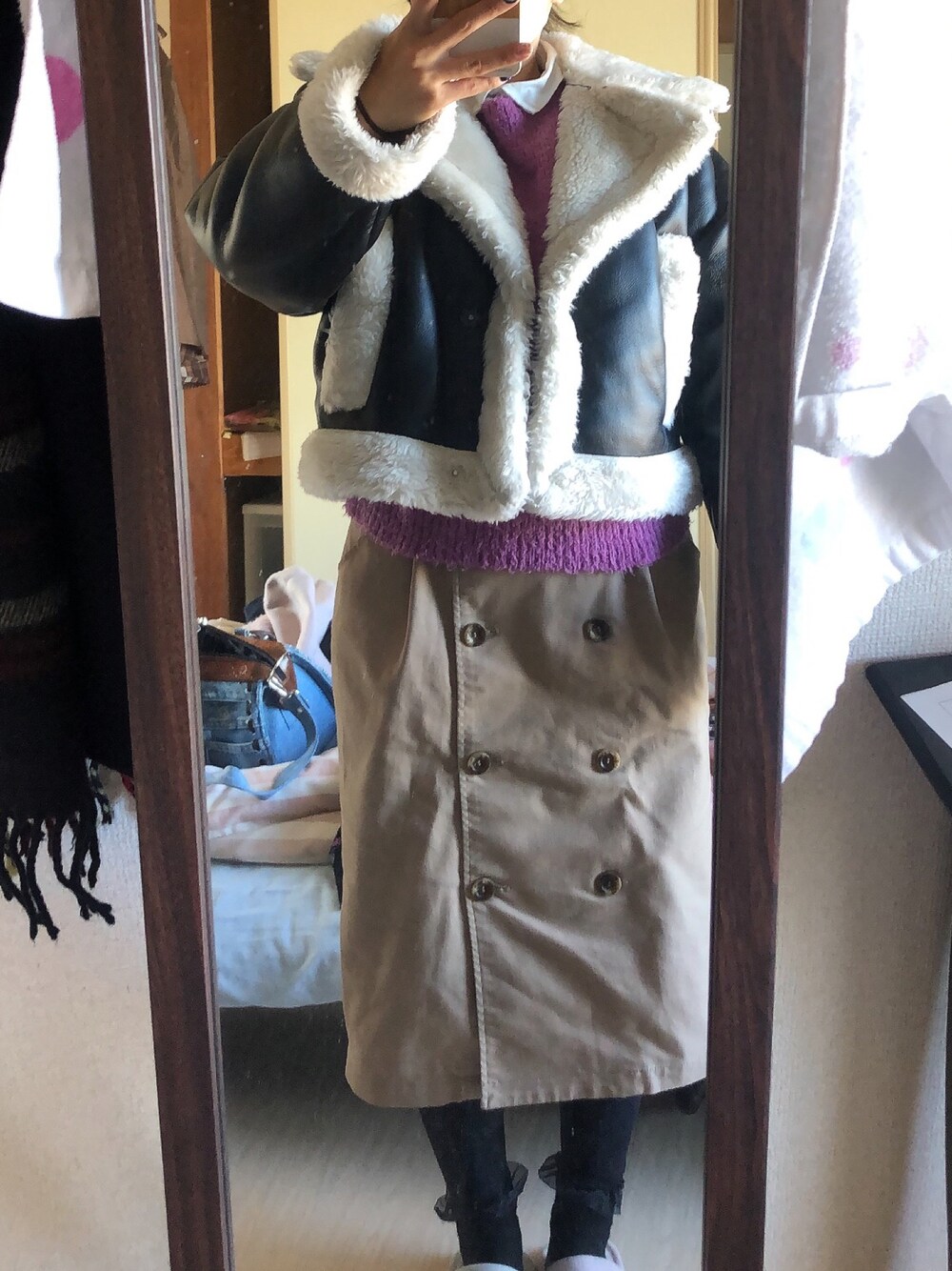 #2023/02/05 #ファーコート #フェザーニット #トレンチ風スカート