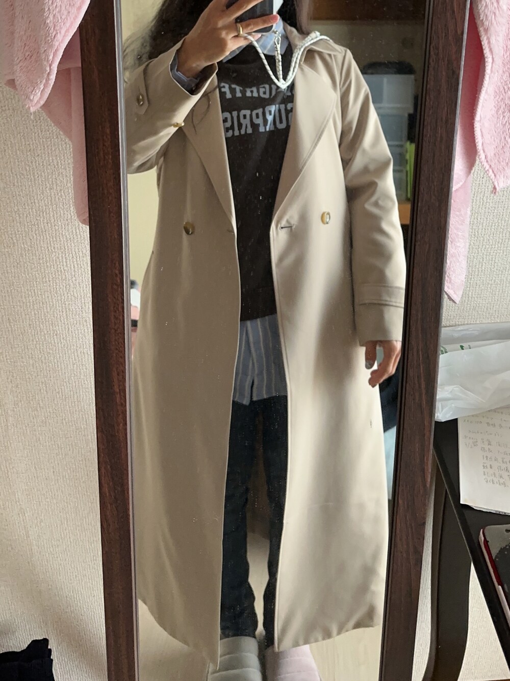 #2023/03/27 #暖デニムスキニーパンツ #ロゴスウェット #ストライプシャツ #トレンチコート
