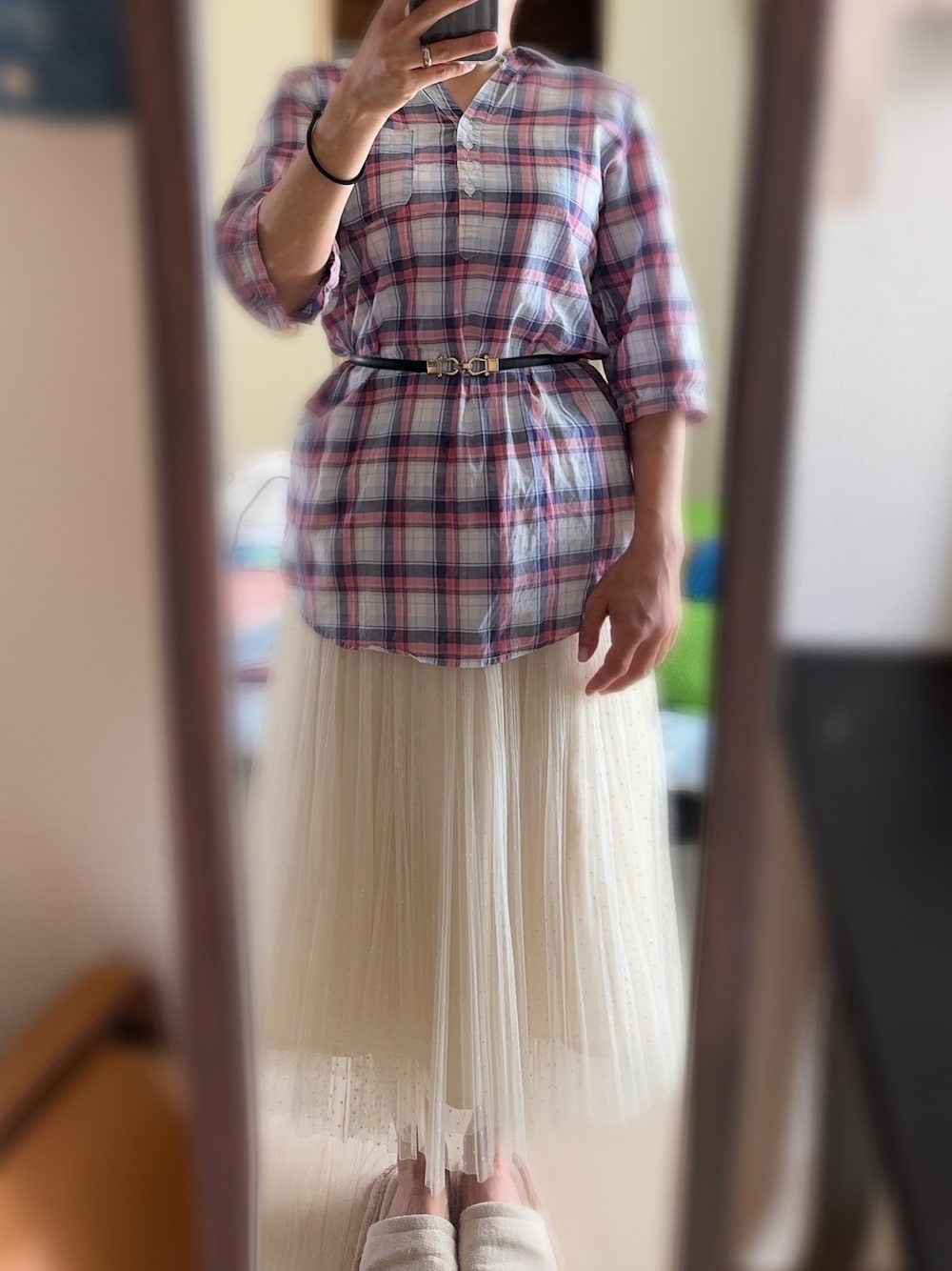 #2023/06/18 #チュールスカート #チェックチュニックシャツ