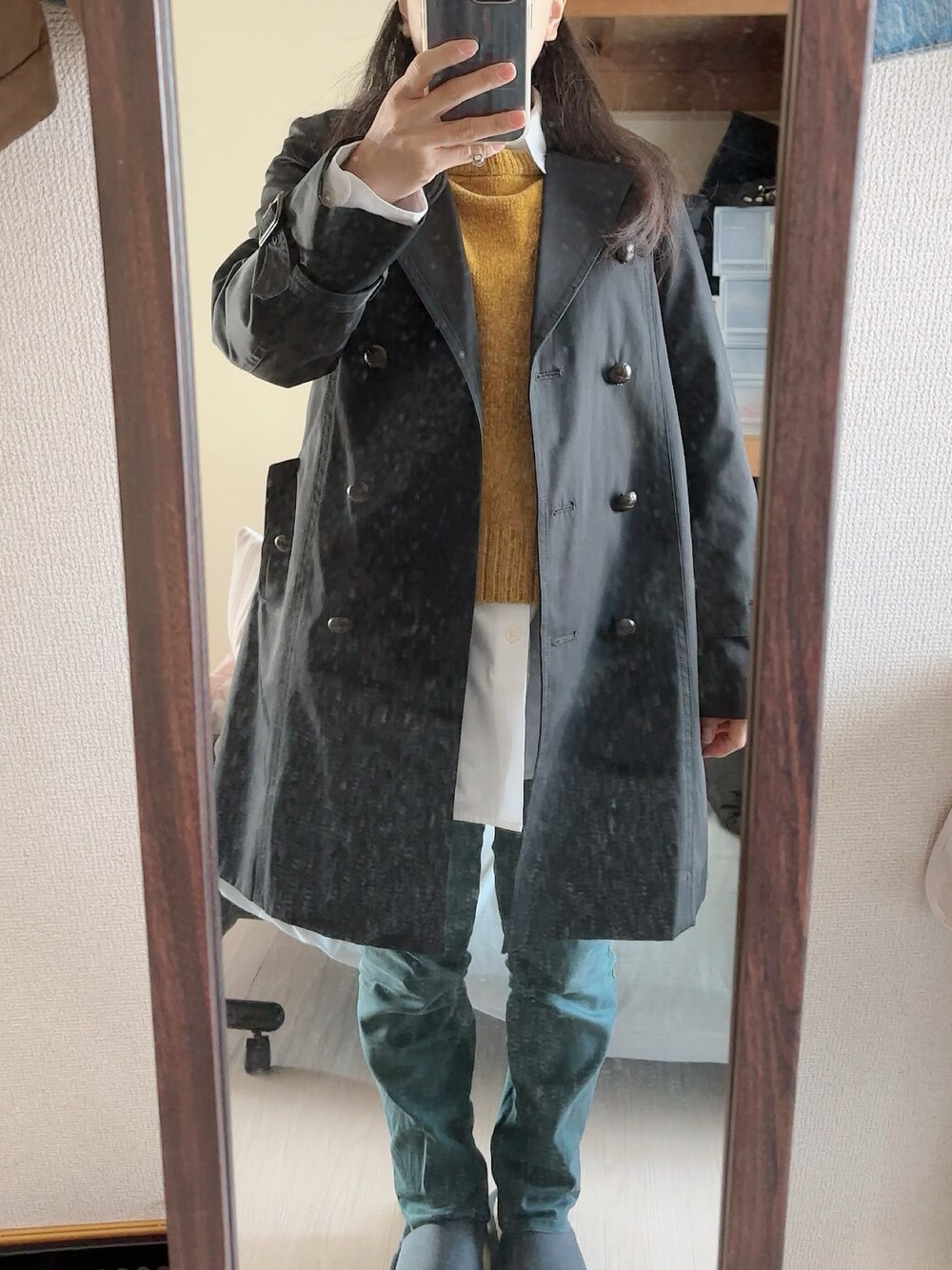 #2023/11/13 #カラースキニーパンツ #メンズシャツ #ニットソー #トレンチコート