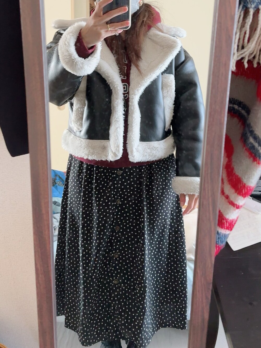 #2024/01/22 #前ボタンVネックワンピース #ロゴパーカー #ムートンコート