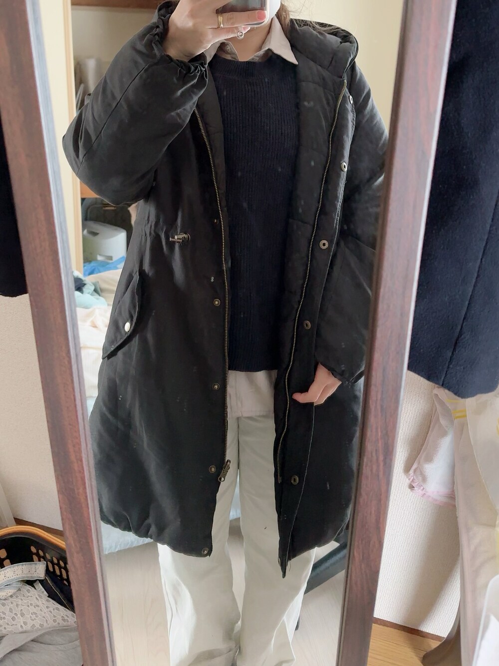 #2024/03/24 #デニムストレートパンツ #サテンシャツ #ニットベスト #リバーシブルミリタリージャケット