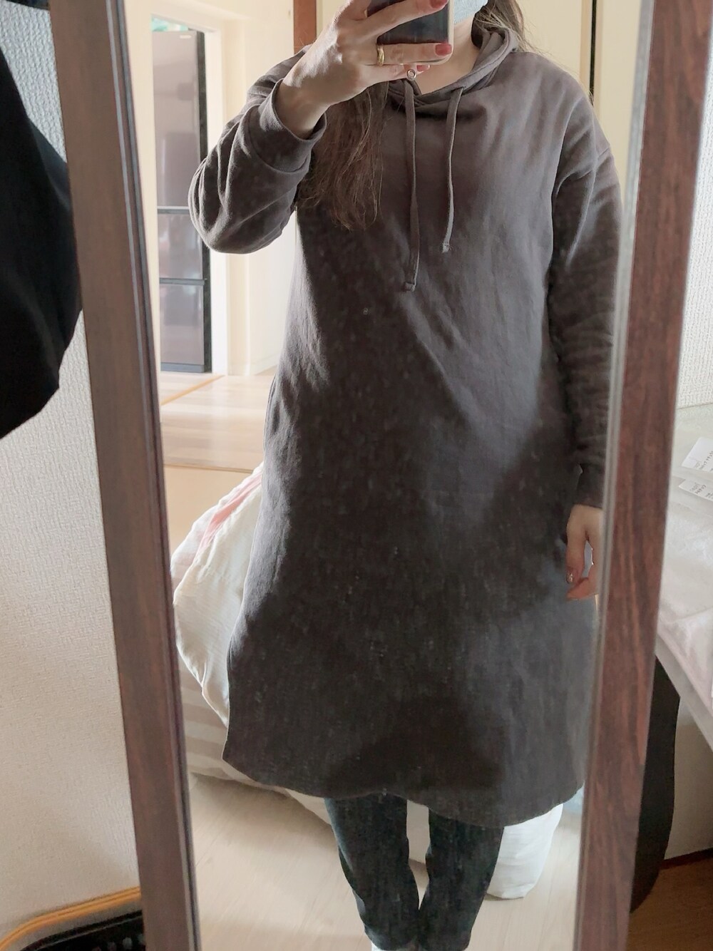 #2024/04/15 #カラースキニーパンツ #裏毛パーカーワンピース #七部袖Tシャツ