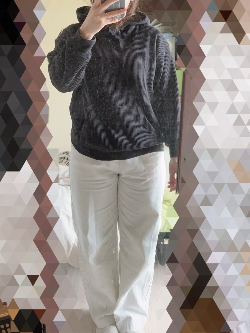 #2024/04/27 #デニムストレートパンツ #ワッフルパーカー #七分袖Tシャツ