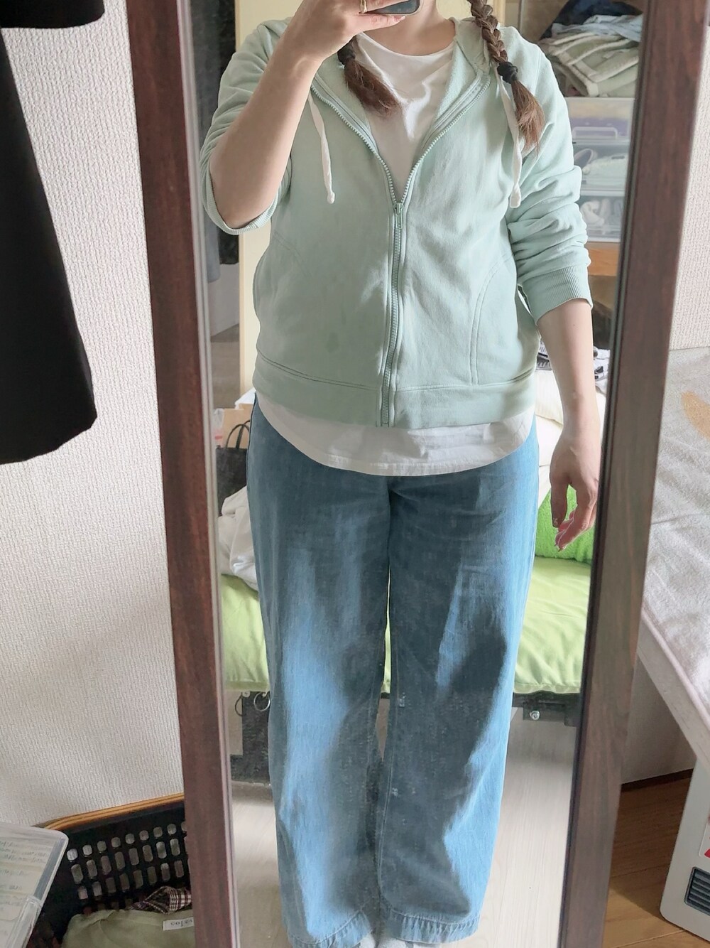 #2024/05/01 #デニムストレートパンツ #バックフォトプリントTシャツ #ジップパーカー