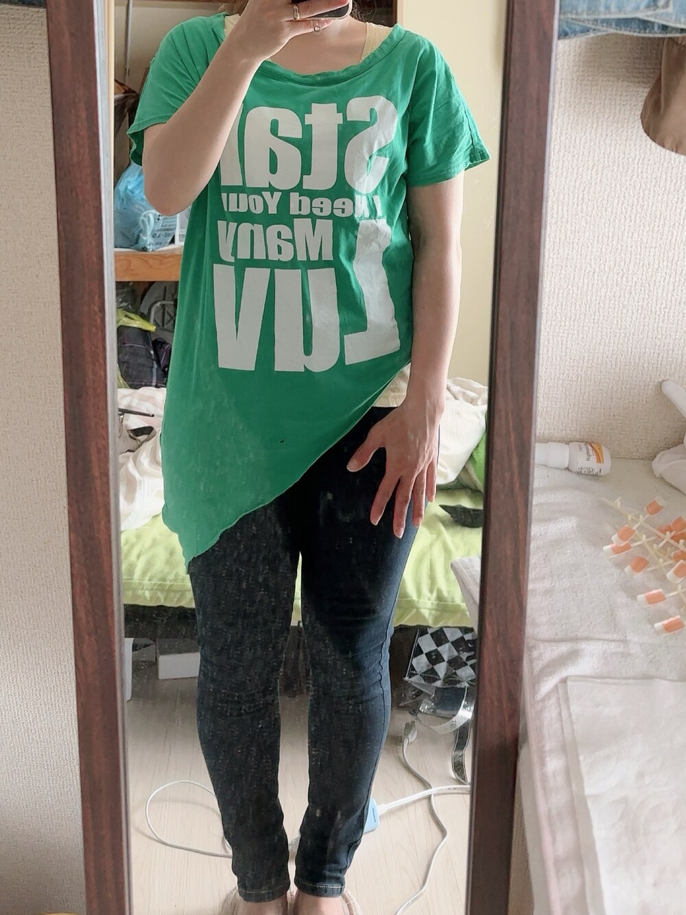 #デニムスキニーパンツ #ロゴチュニック #タンクトップ