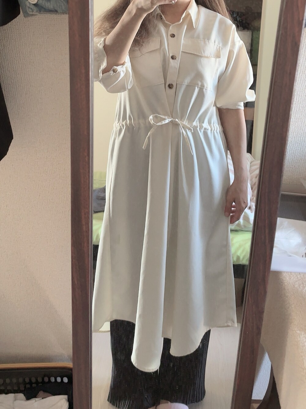 #プリーツパンツ #ドロストシャツワンピース