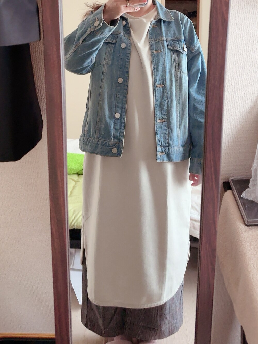 #グレンチェックストレートパンツ #フォトプリントワンピース #ゆるジージャン