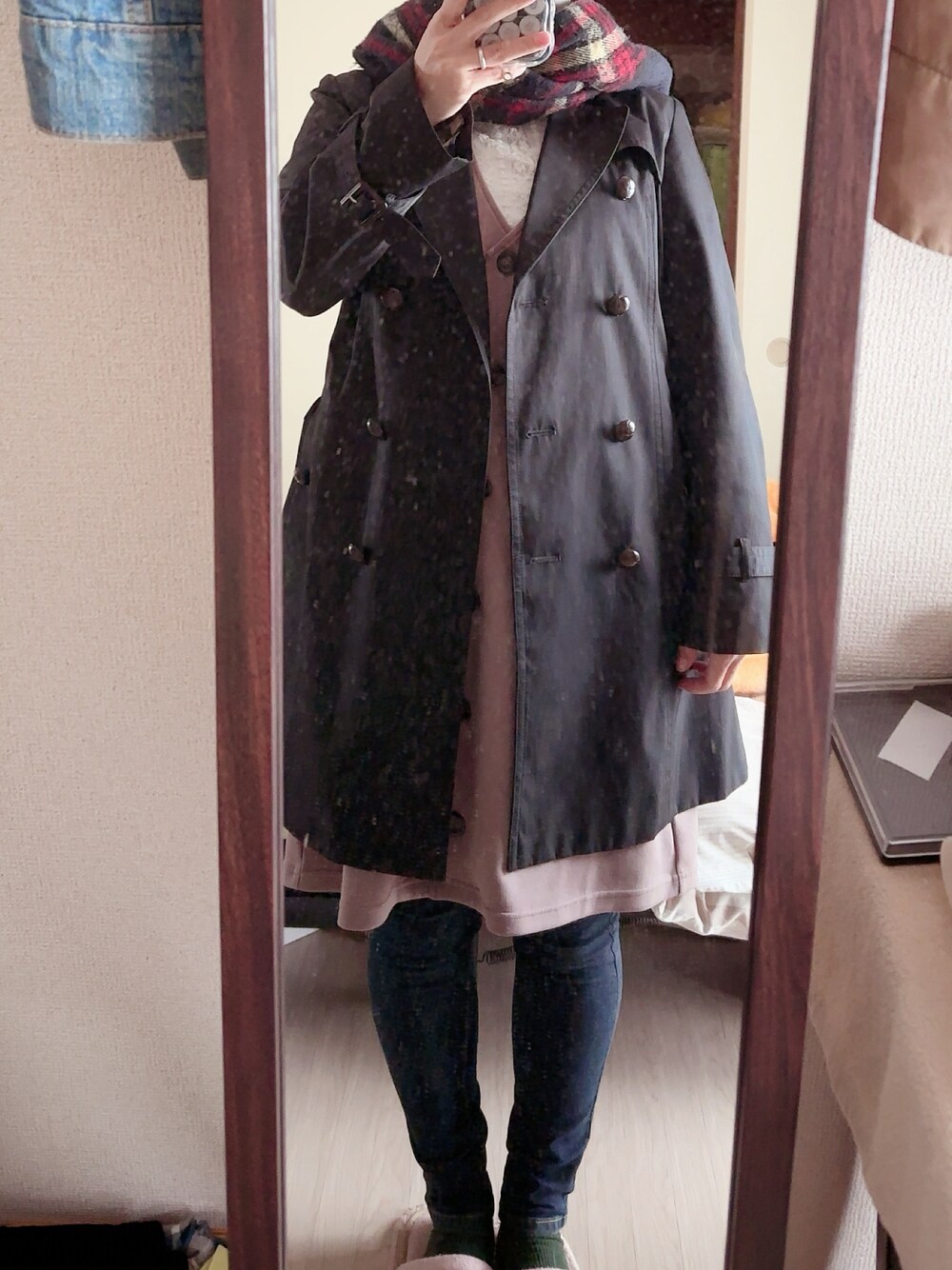 #デニムスキニーパンツ #ハイネック総レースプルオーバー #前釦ジャンスカ #トレンチコート