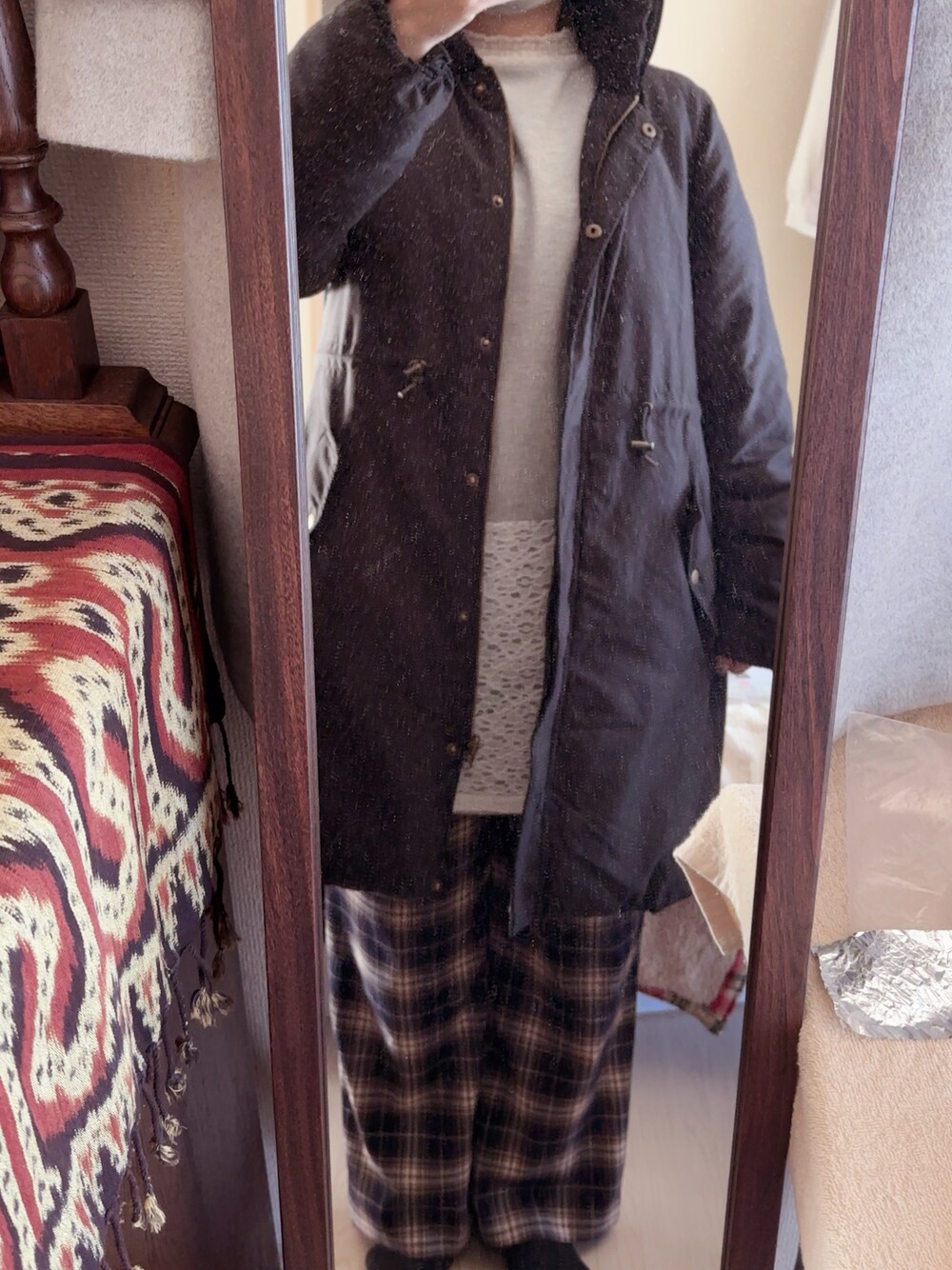 #チェックパンツ #切り替えワンピース #ハイネックレースカーテンプルオーバー #リバーシブルミリタリージャケット