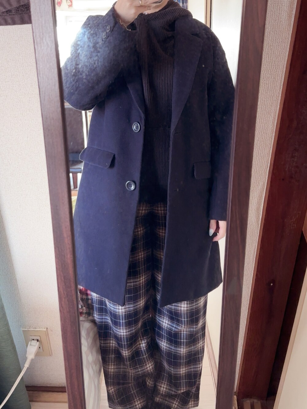 #チェックストレートパンツ #ワッフルパーカー #ハイネックメローTシャツ #チェスターコート
