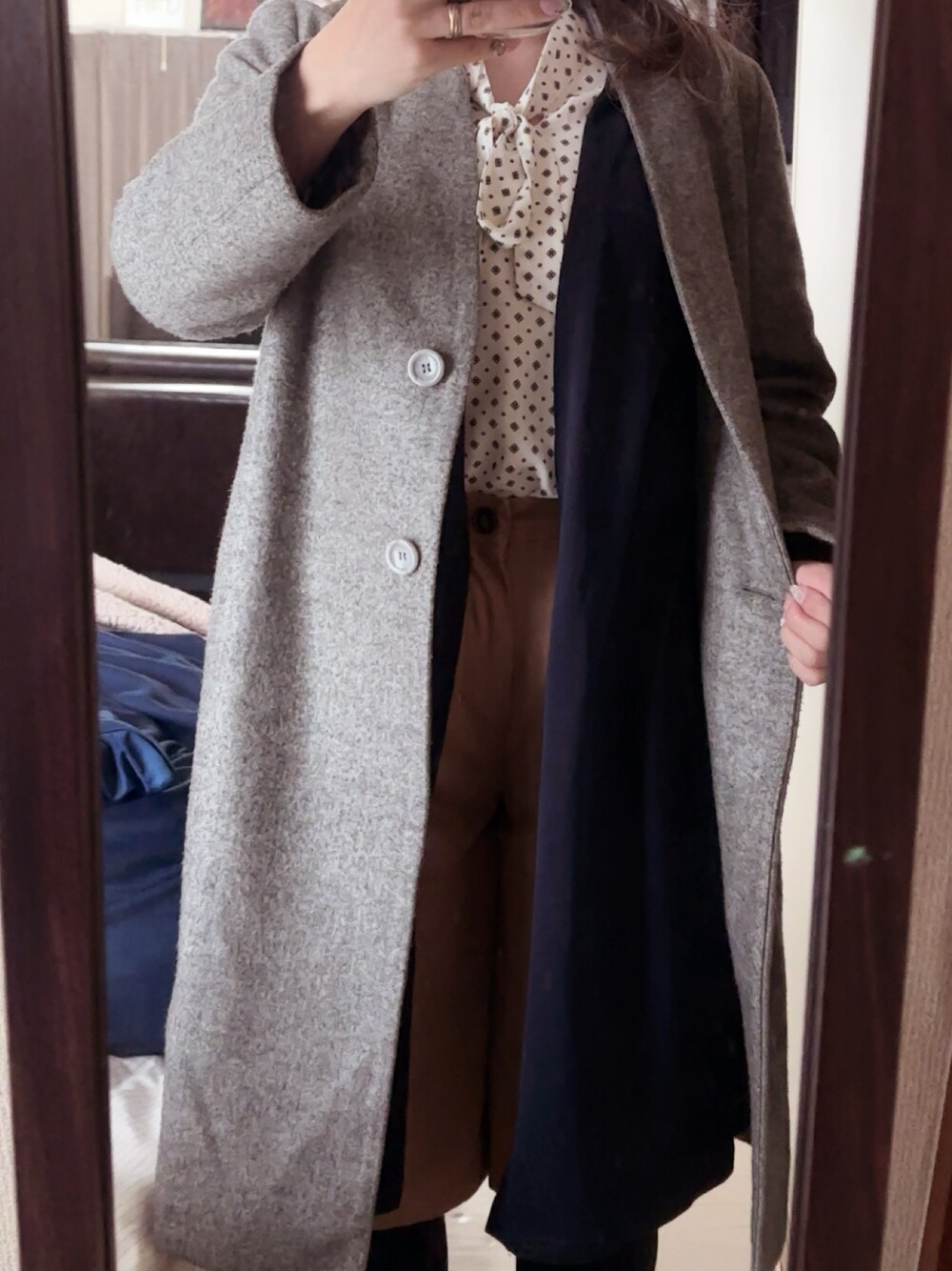 #ノーカラーコート #ボウタイブラウス #ロングカーディガン #ハーフパンツ