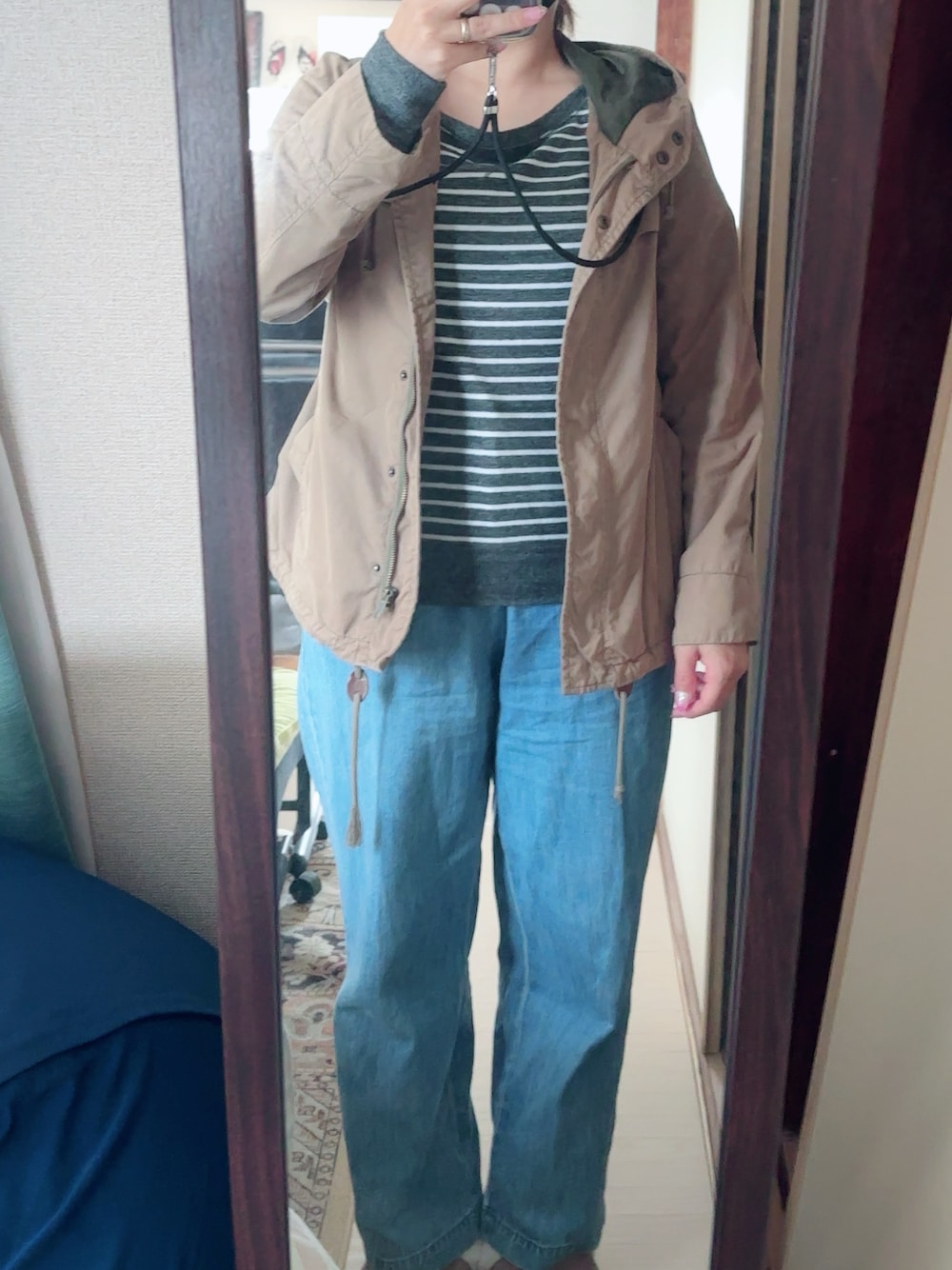 #ストレートパンツ #Vネックニットプルオーバー #ミリタリージャケット
