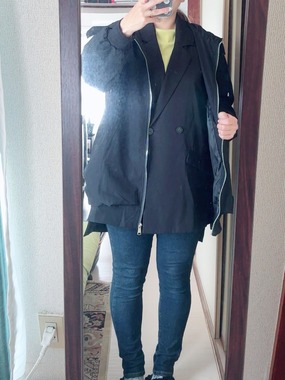 #デニムスキニーパンツ #バックプリントTシャツ #ジレ #ミディ丈ミリタリージャケット
