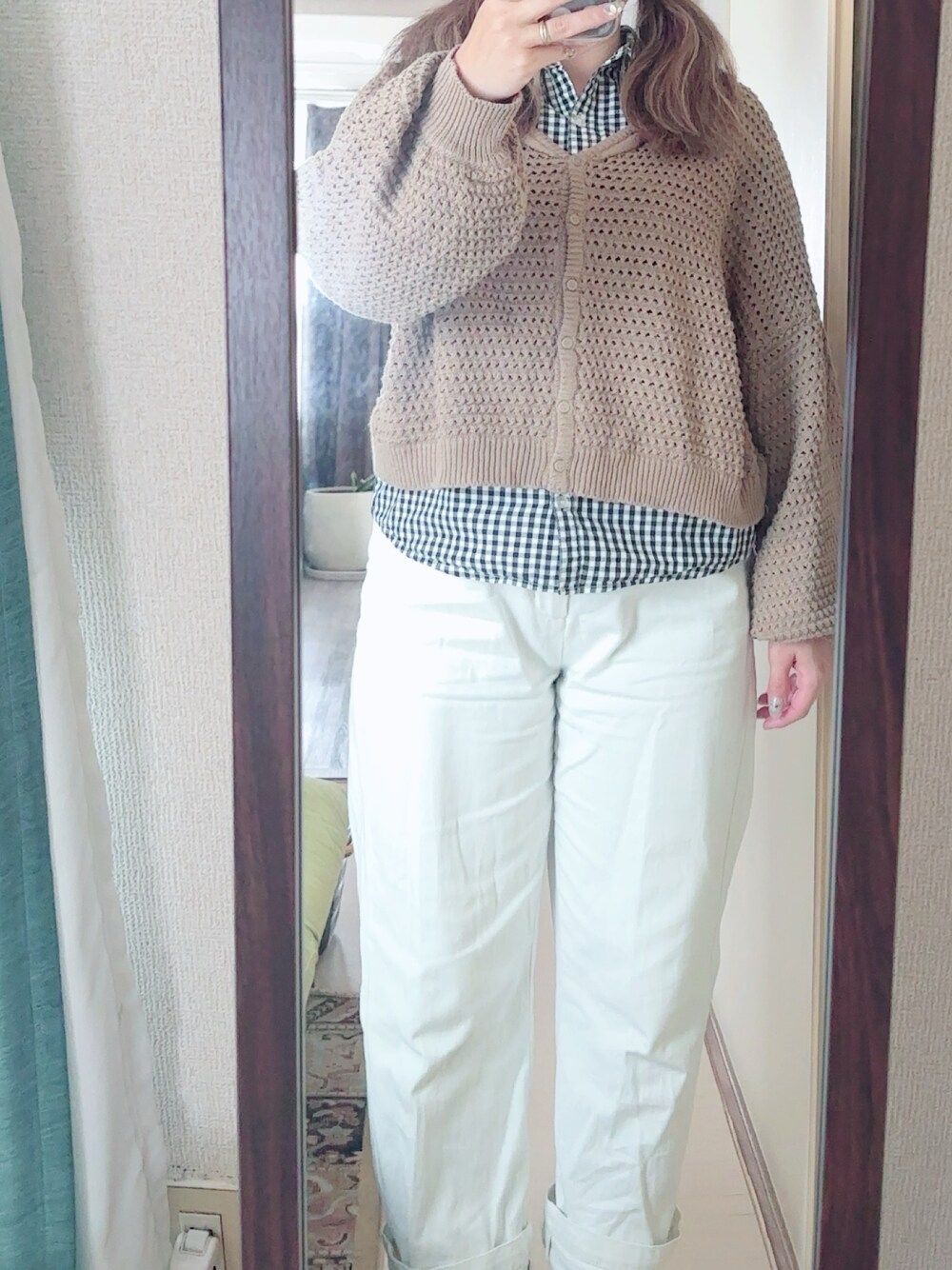 #デニムストレートパンツ #チェックシャツ #セーラーカラーニット