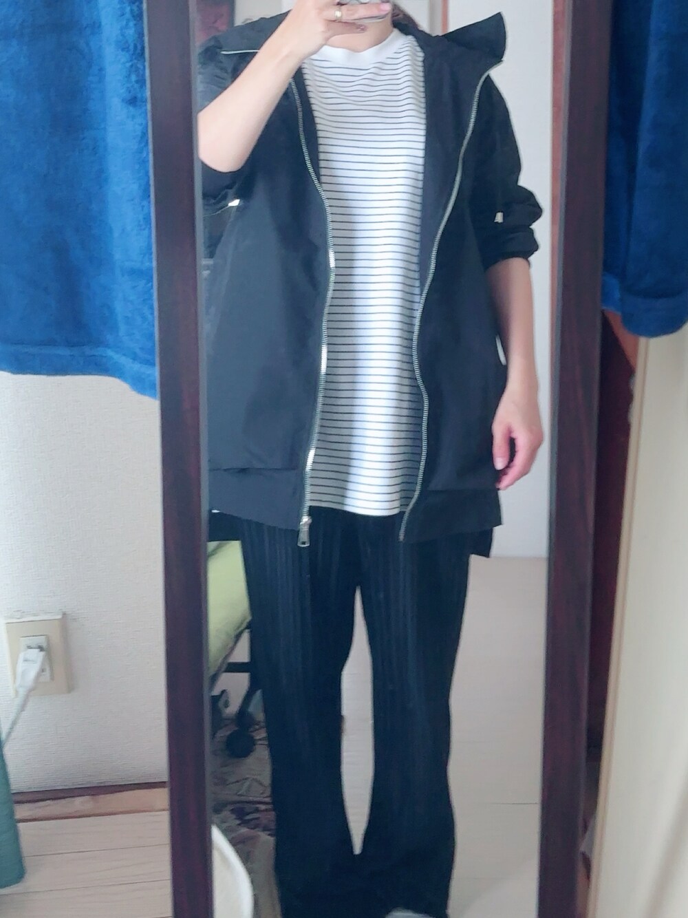 #プリーツパンツ #ボーダーチュニックワンピース #ミリタリージャケット