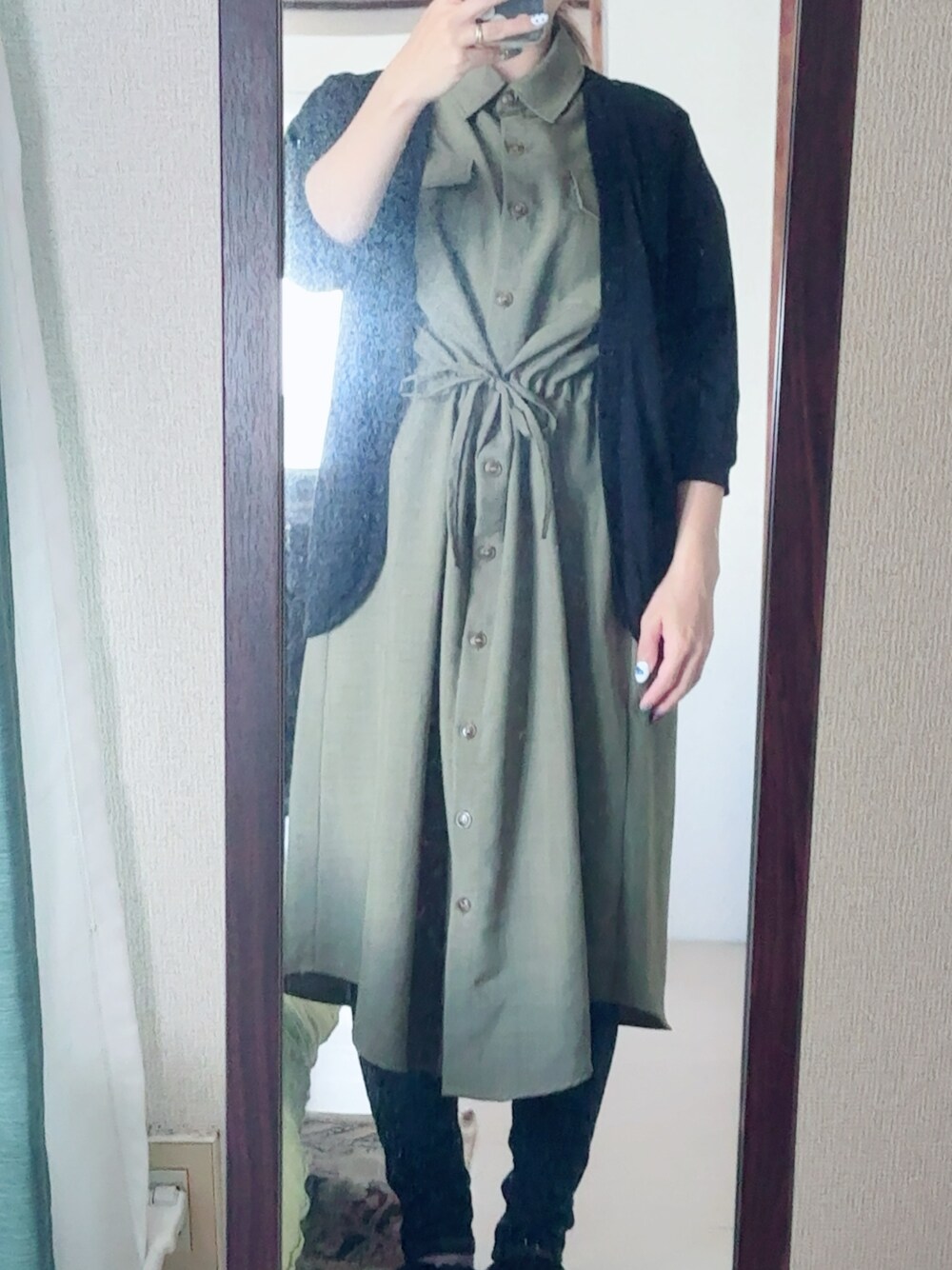 #ドロストシャツワンピース #ラウンドカーデ #デニムスキニーパンツ