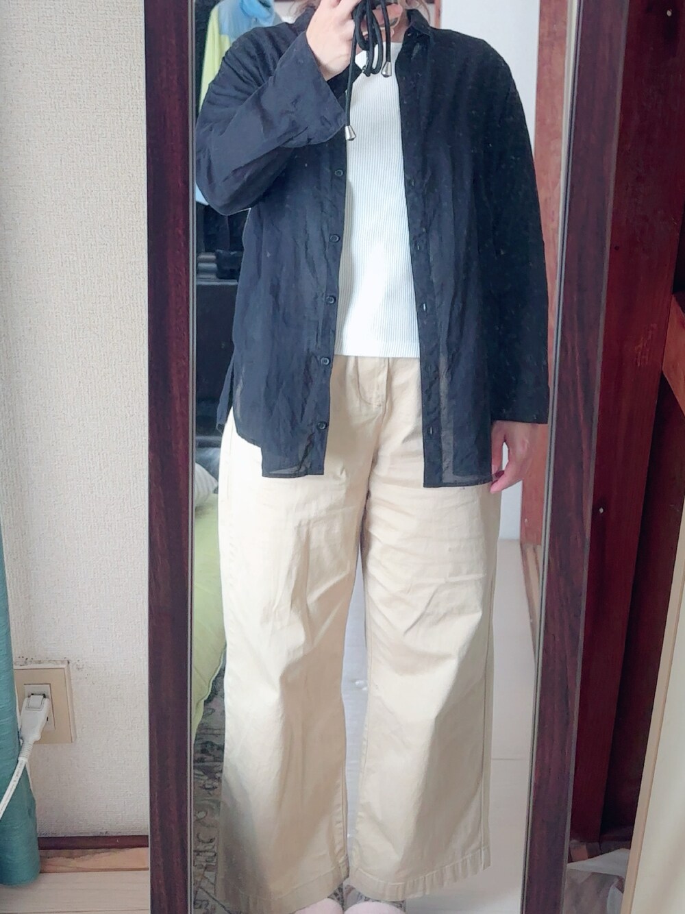 #ストレートパンツ #ワッフルTシャツ #シアーシャツ