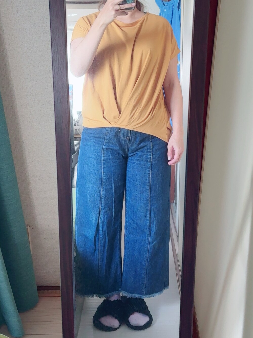 #デニムフリンジワイドパンツ #裾タックTシャツ