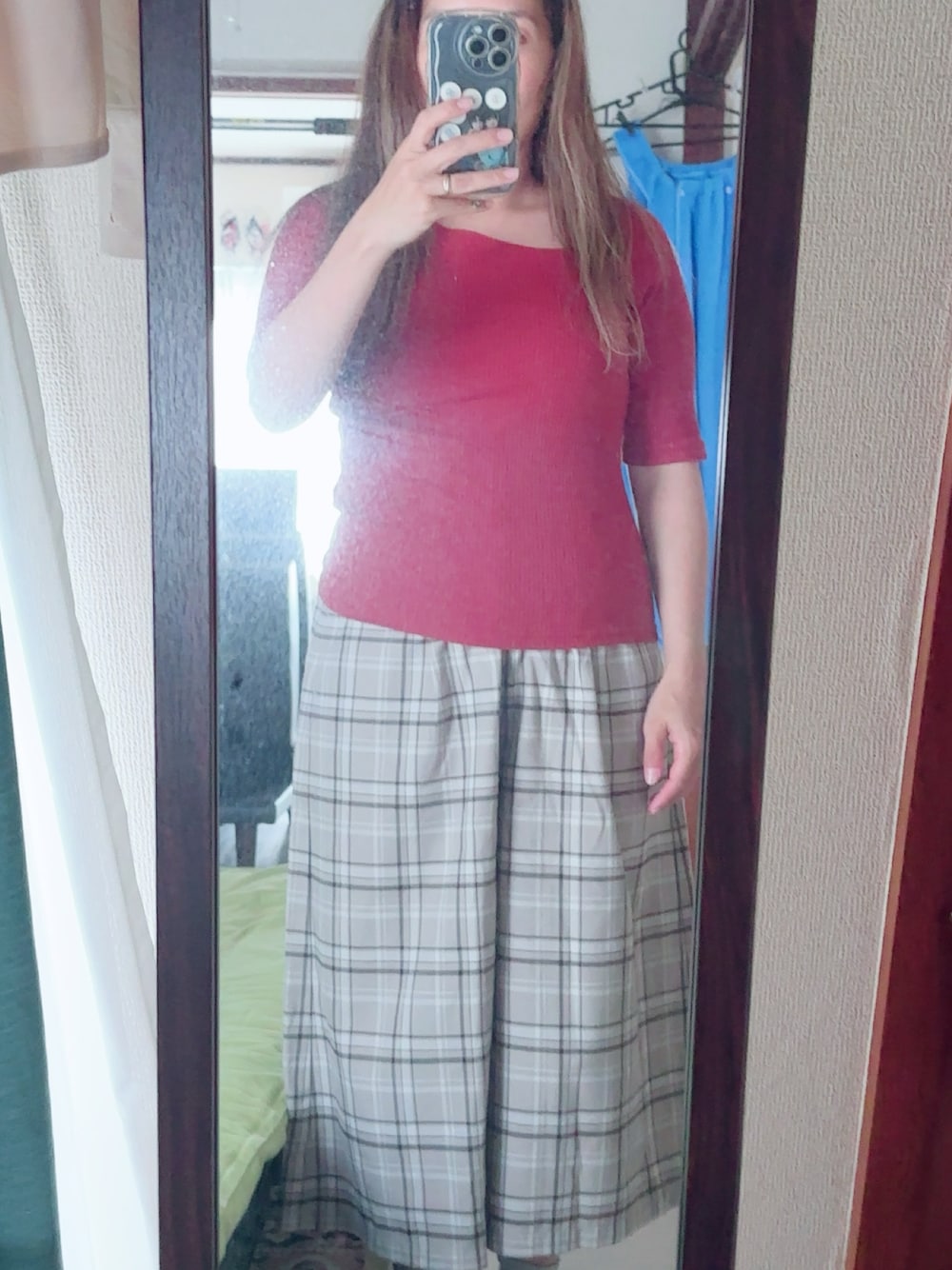 #アシメネックプルオーバー #チェックガウチョパンツ