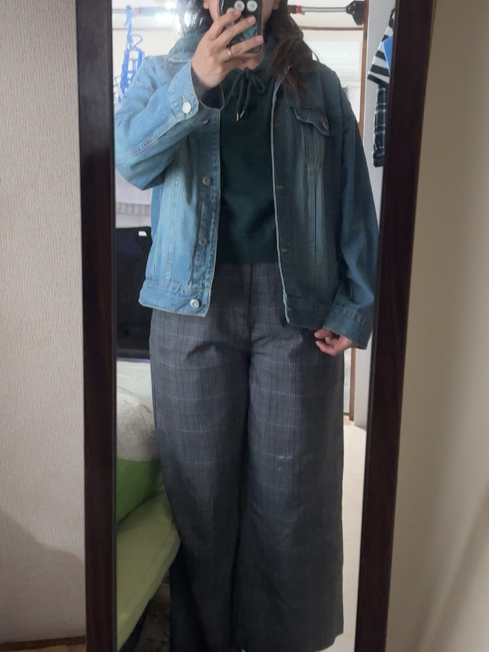 #グレンチェックストレートパンツ #レースアップパーカー #ゆるジージャン