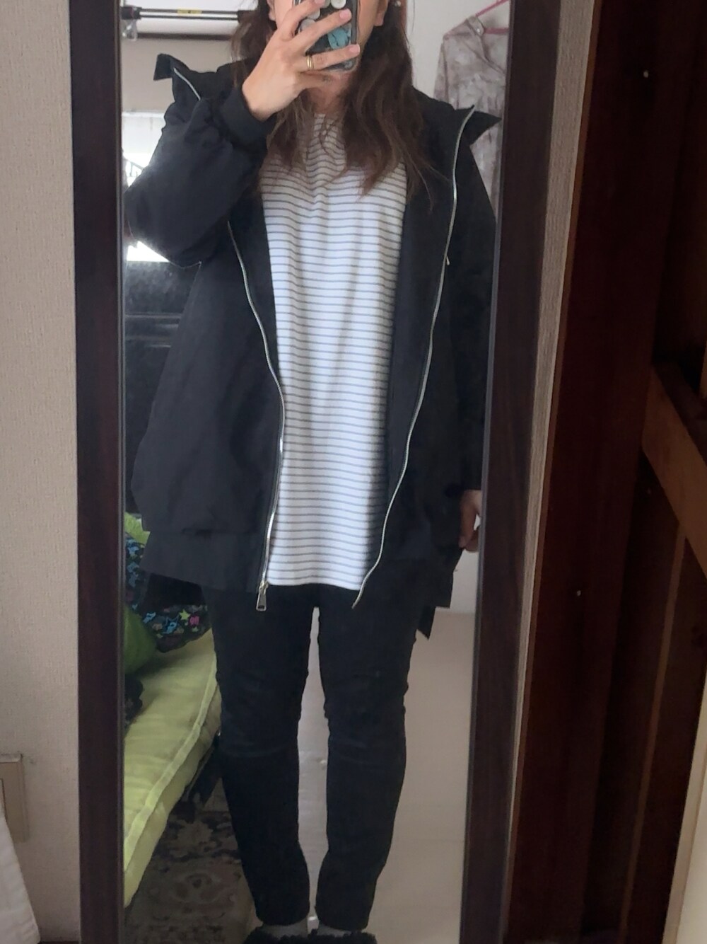 #スリムカラースキニーパンツ #七部袖Tシャツ #ボーダーチュニックワンピース #ミディ丈ミリタリージャケット