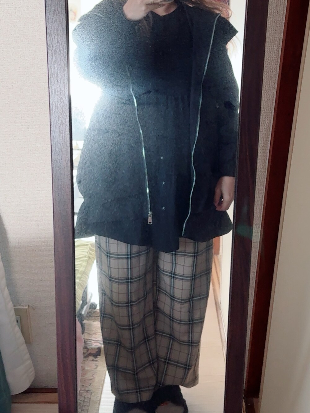 #チェックストレートパンツ #ティアードブラウス #ミリタリージャケット