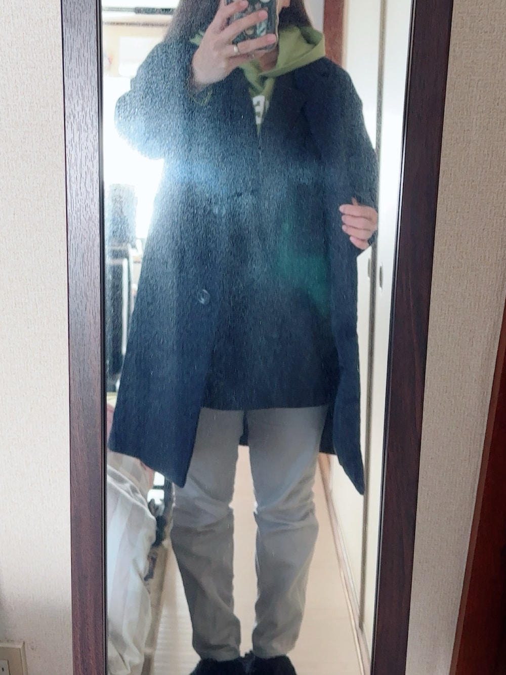#カラースキニーパンツ #ロゴパーカー #ジレ #チェスターコート