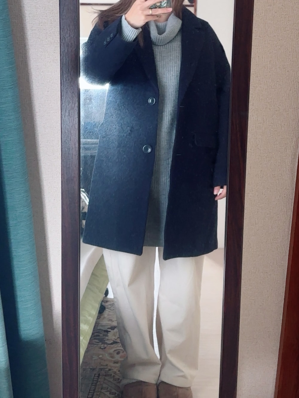 #コーデュロイパンツ #オフタートルニットワンピース #チェスターコート