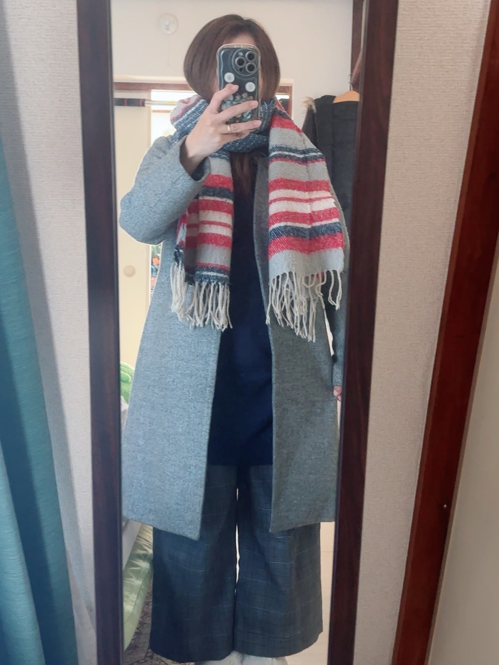 #ゲレンチェックワイドパンツ #ロゴパーカーワンピース #ノーカラーコート