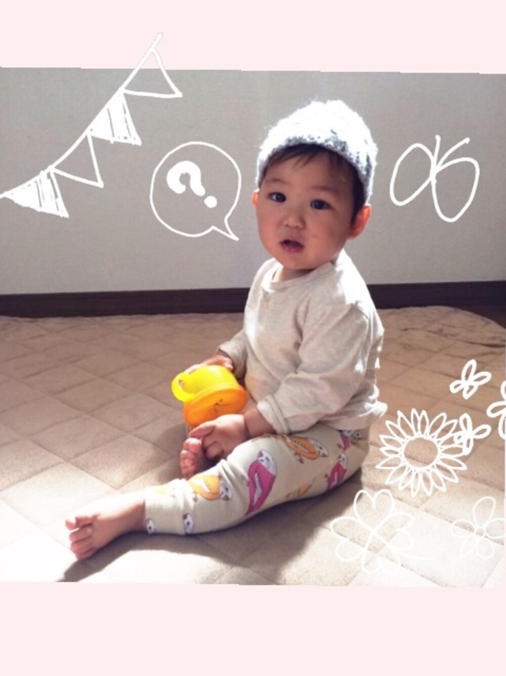 弟 姉とお揃いの柄のminirodiniのスパッツ トップス 無印良品 スパッツ minirodini 帽子 ユーズド 帽子かぶってほしいけど瞬殺ですぐとるよ(笑)
