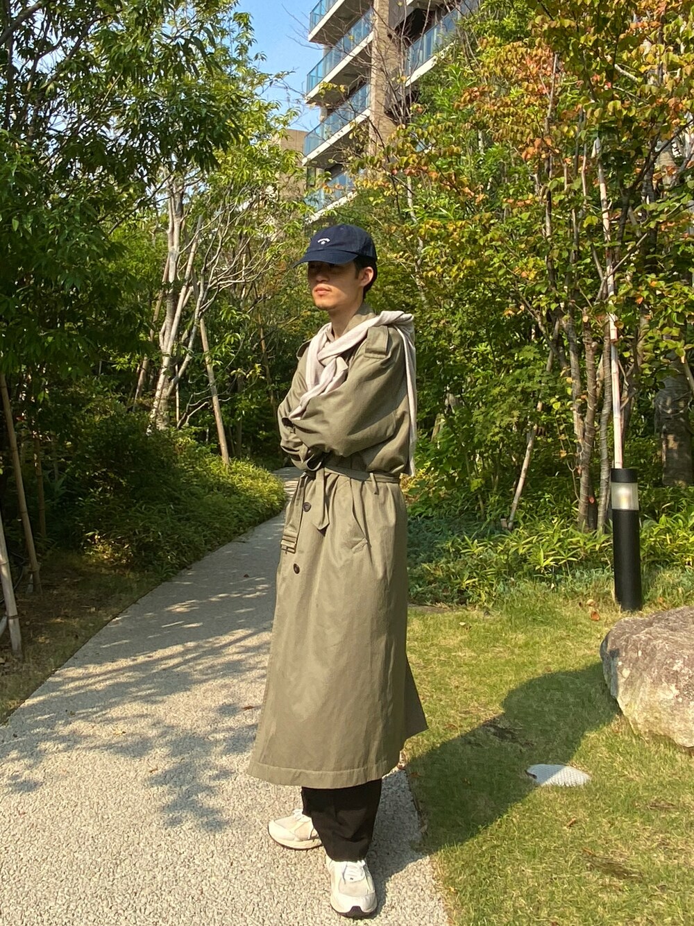トレンチコートをスポーティーに落とし込んで見ました。 意識したことは、コートを綺麗めすぎないアイテムを選定したことと、頭、つま先にかなりスポーツテイストなアイテムを入れることによって全体の印象をスポーツミックスにしました。 お気に入りです。