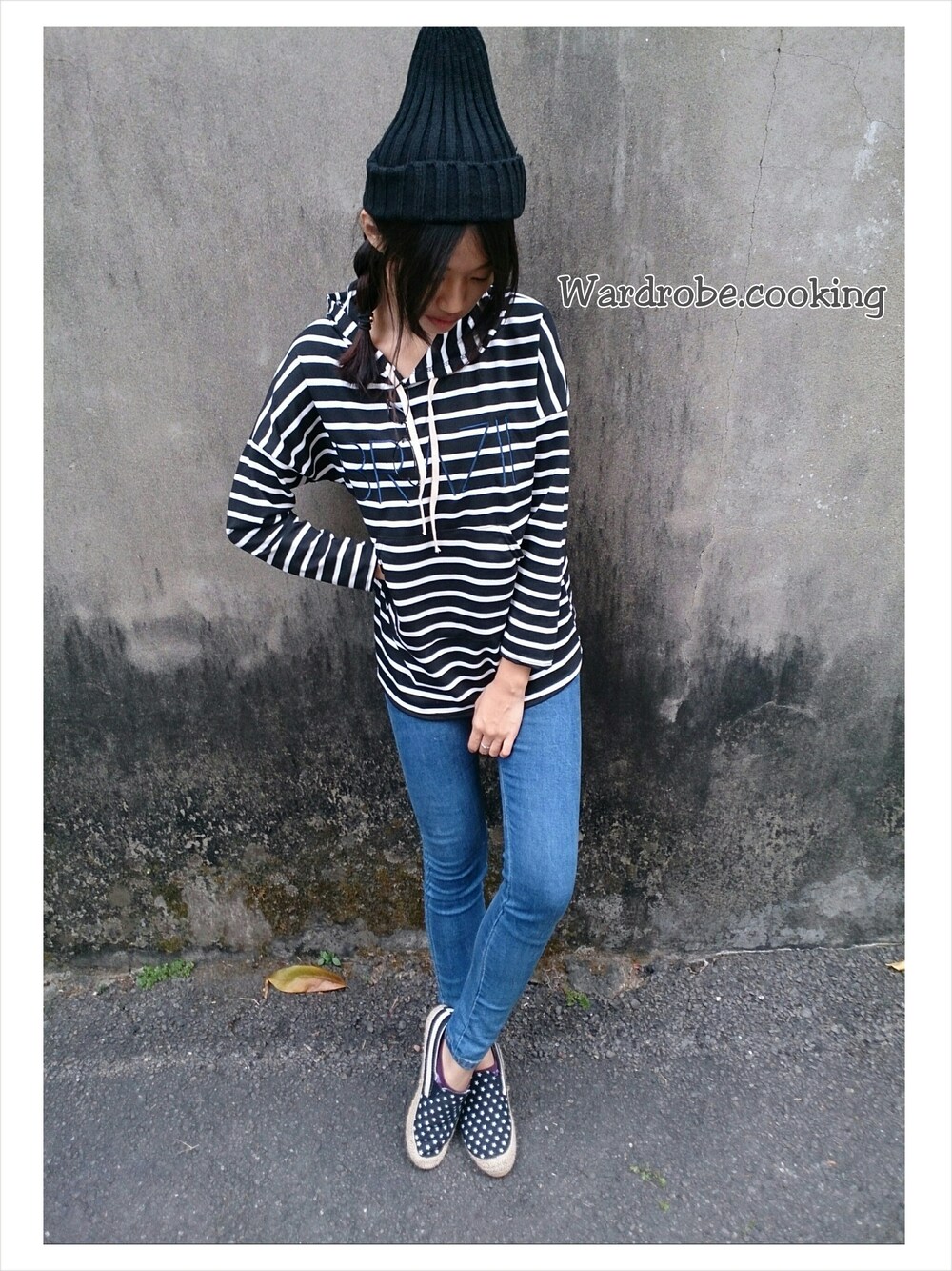 麵麵のパーカー「街頭條紋帽T」を使ったコーディネート