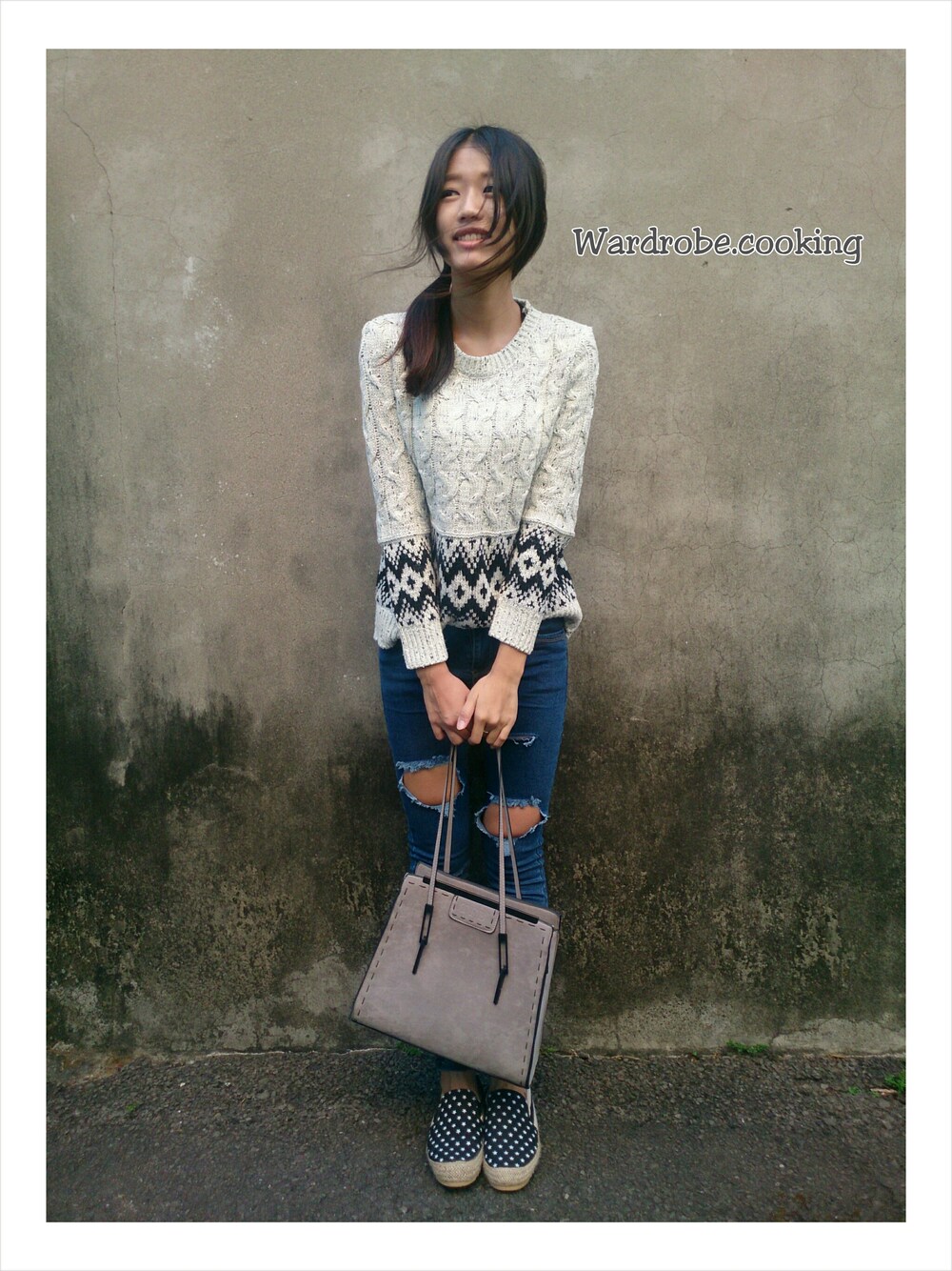明天就是12月的月的新開始~也是上班日啦!!!最近天氣真的好熱...麵麵一整天都昏昏沈沈的,暖冬真的讓人覺得想睡欸! (根本自己很愛睡..) 聽說下週又要冷了!氣溫直降到13度,不知道這次預報有沒有準?!雖然每次我都希望不要冬天來~但這次也太久啦!!!開始懷念冬天躲被窩的幸福感了>//< 冬天來啊來啊~~~(招手) 好啦!別聽我廢話>//<今天穿搭也是很多人詢問的幾何毛衣唷!這件也是有混色針織的效果喔!杏色有些微的黑色毛線淺淺的點綴,黑色則是有杏色的毛線點綴~有黑白兩色,姐妹裝也超適合:D 上衣:http://wardrobecooking.territory.tw/products/韓系幾何毛衣 褲子:http://wardrobecooking.territory.tw/products/刷破膝蓋牛仔褲 FB:https://www.facebook.com/wardrobe.cooking