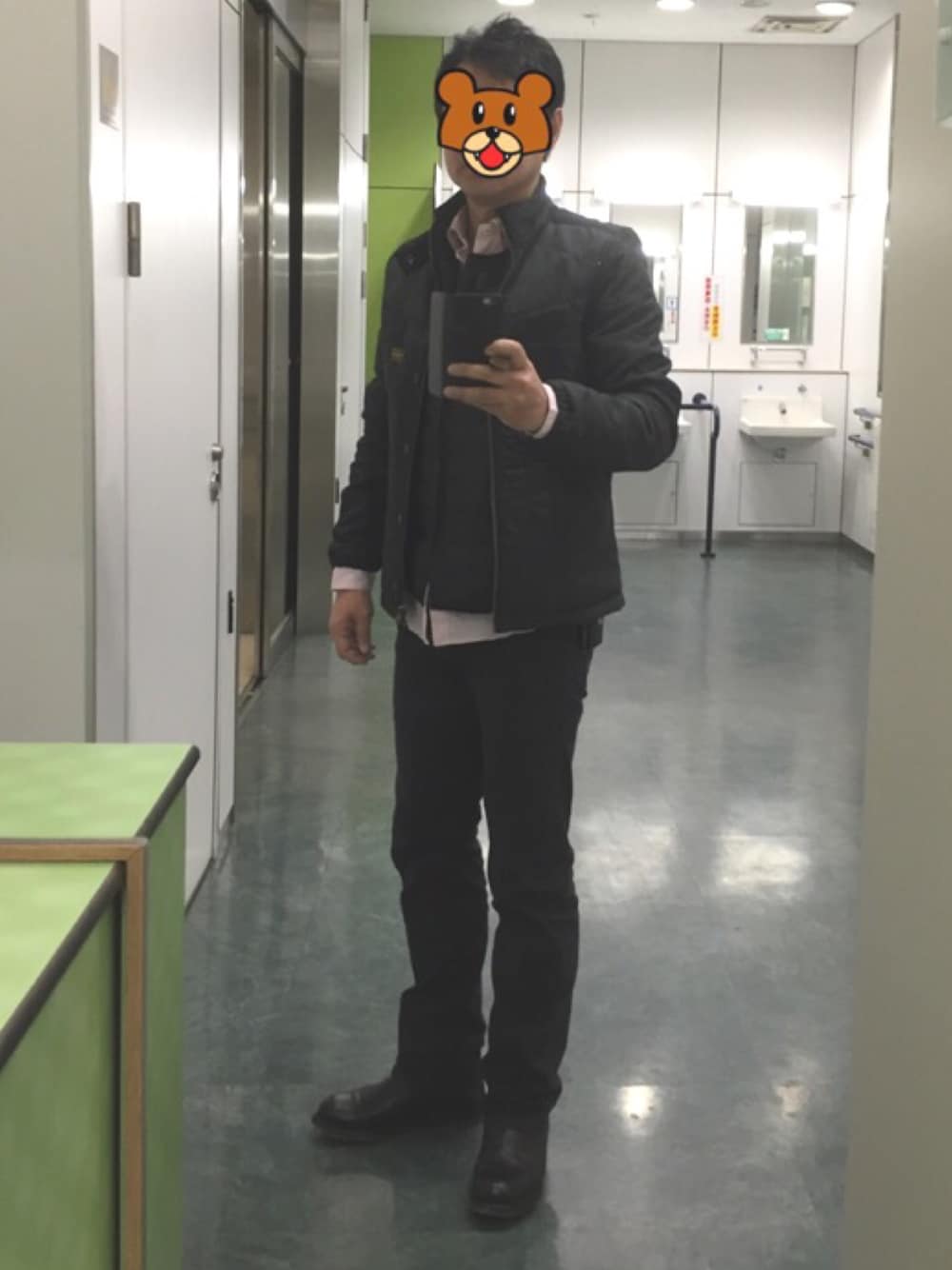 ライダー風な感じで着てみました〜 ピンクのストライプシャツとインナーのダウンベストでアクセントをつけましたが、 写真が分かりにくいですねσ(^_^;)