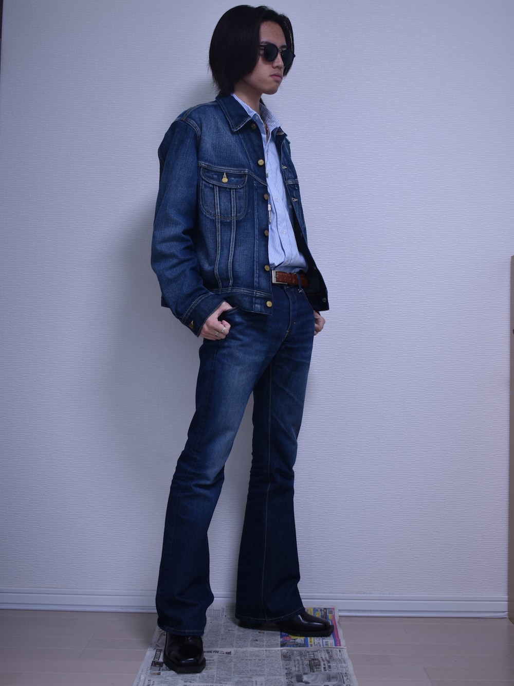 KACCHAN のデニムパンツ「Lee/リー AMERICAN RIDERS/アメリカンライダース 202 ベルボトムジーンズ /フレアデニムパンツ/フレアパンツ/デニムセットアップ可」を使ったコーディネート