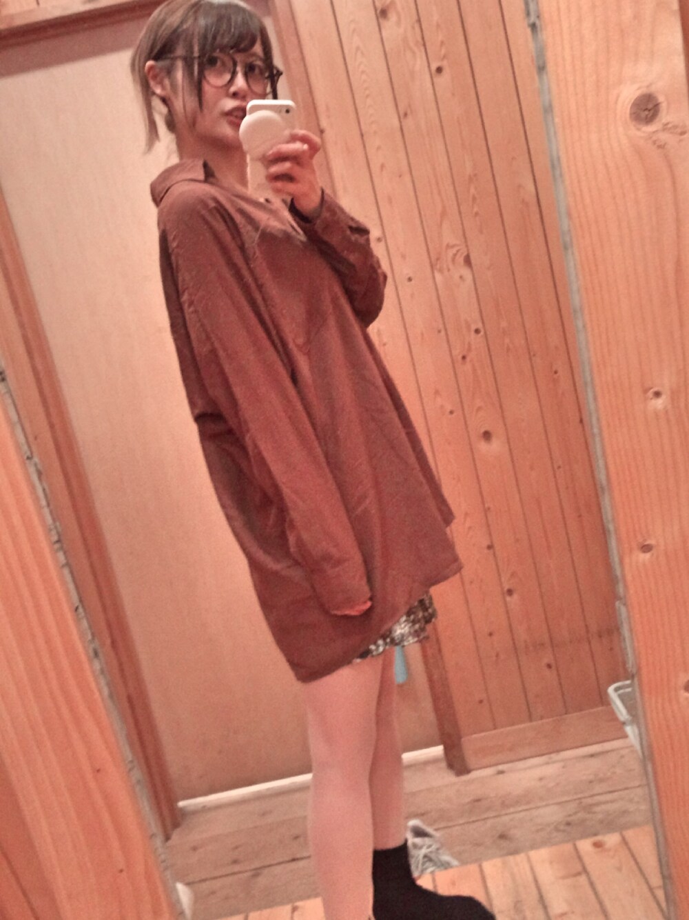 ブラウン系のシャツ/ブラウスを着用したレディースの春コーディネートの1枚目の写真